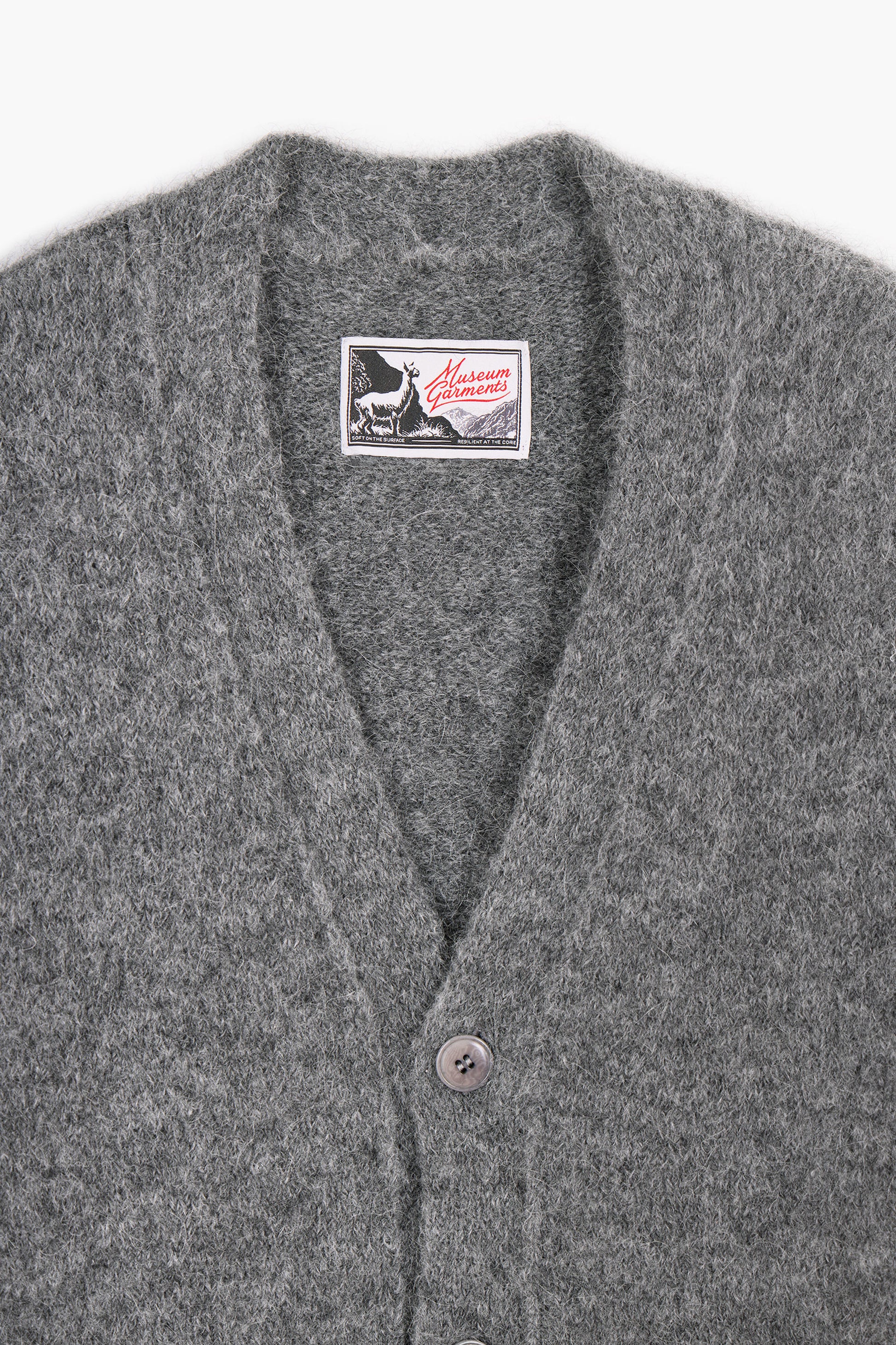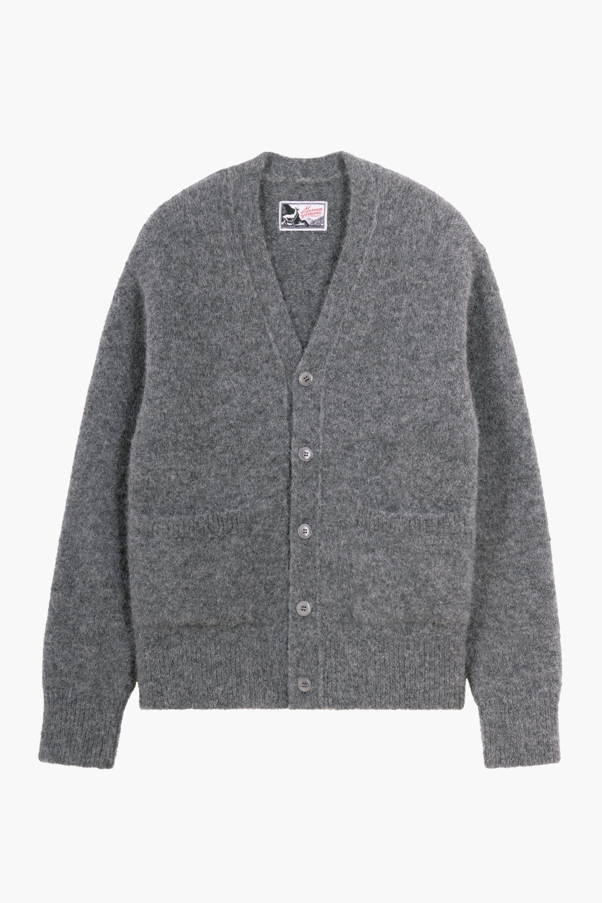 A boxy cardigan that combines comfort, softness, and a unique texture. Knitted in stockinette stitch from an Italian yarn composed of 87% baby alpaca (from areas of the adult coat where the hair is finer), complemented by polyamide and elastane for structure, it charms with its hairy and fluffy appearance.