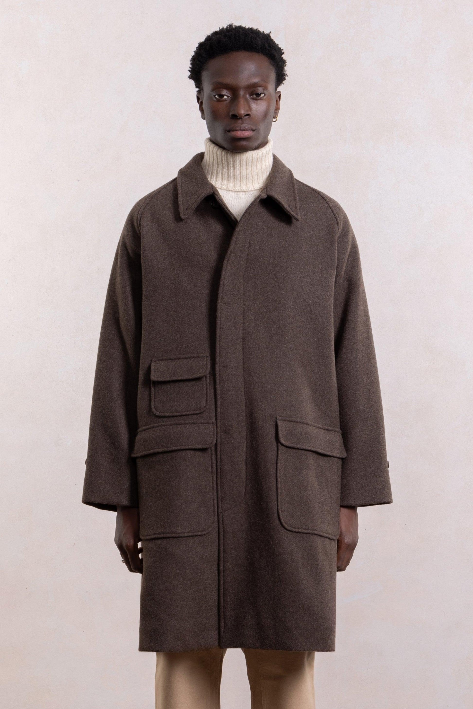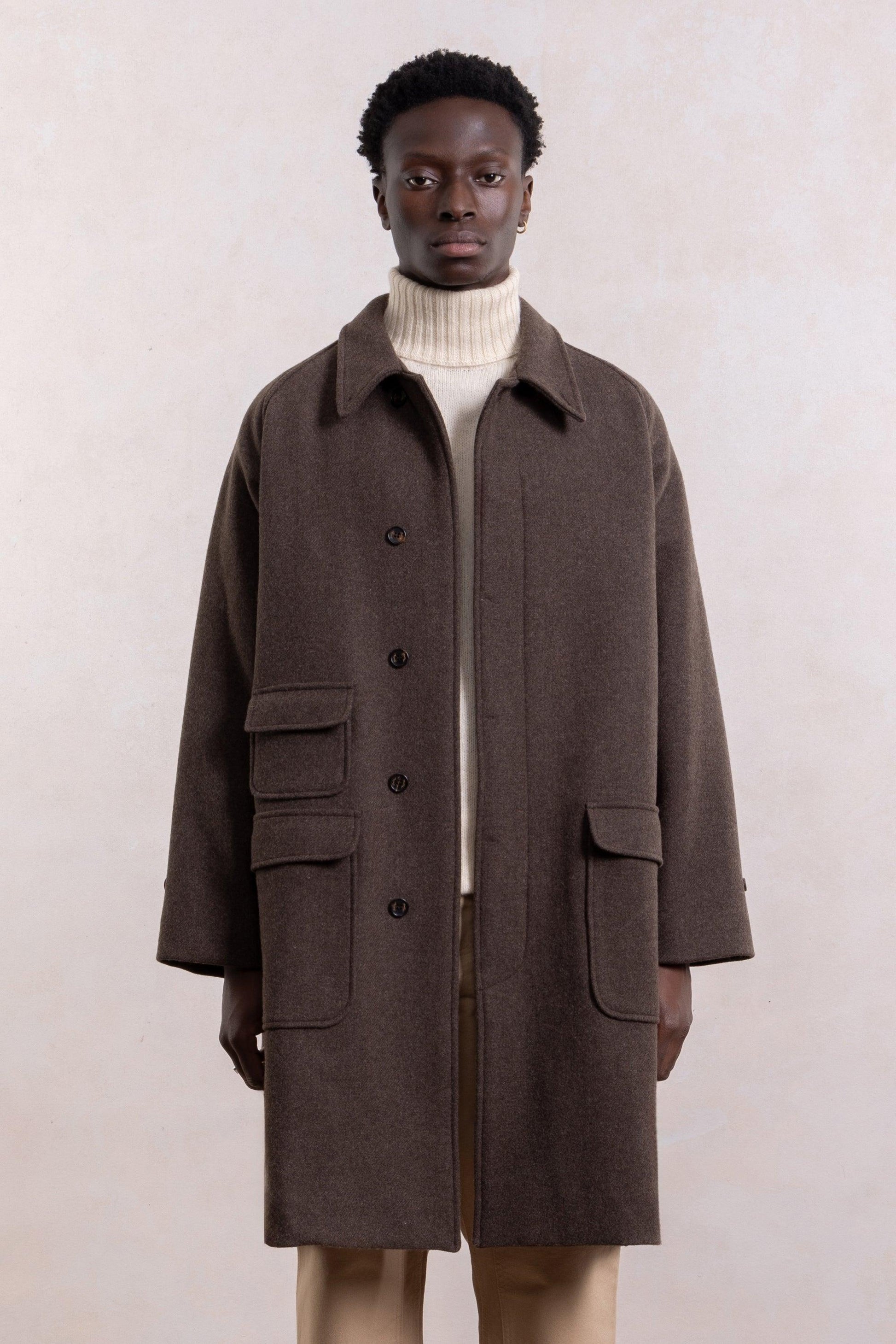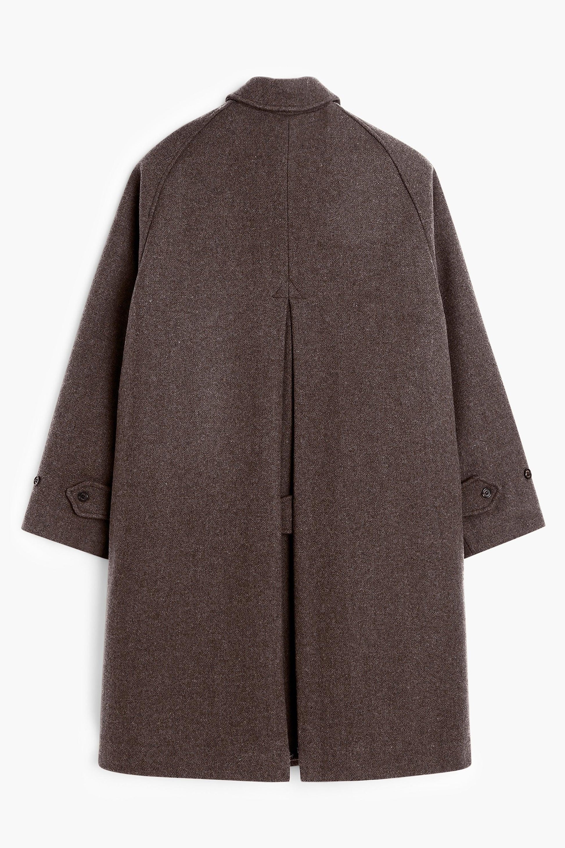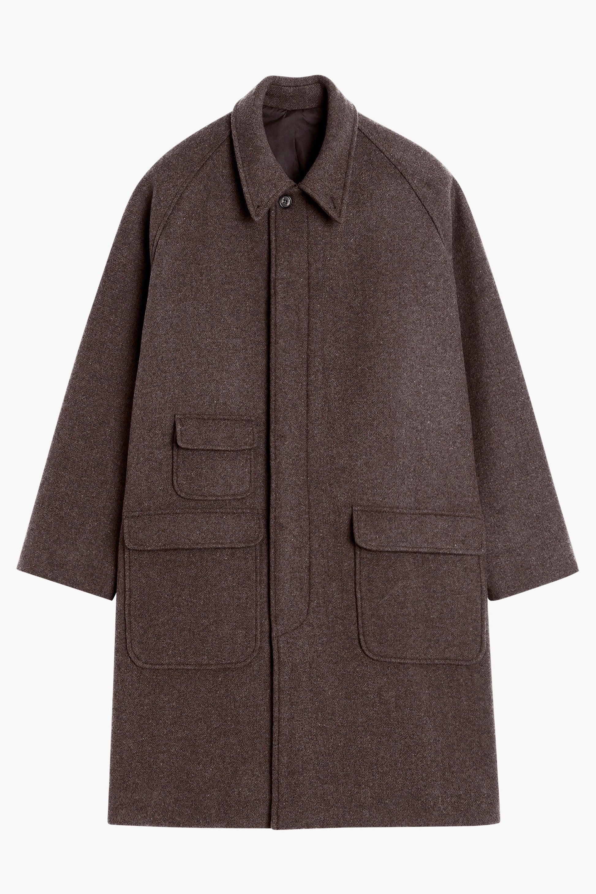 This balmacaan wool coat features a loose, flowing cut, raglan sleeves and three patch pockets. An ideal piece for tackling winter temperatures, adding layers of layering to your looks thanks to its very loose fit.