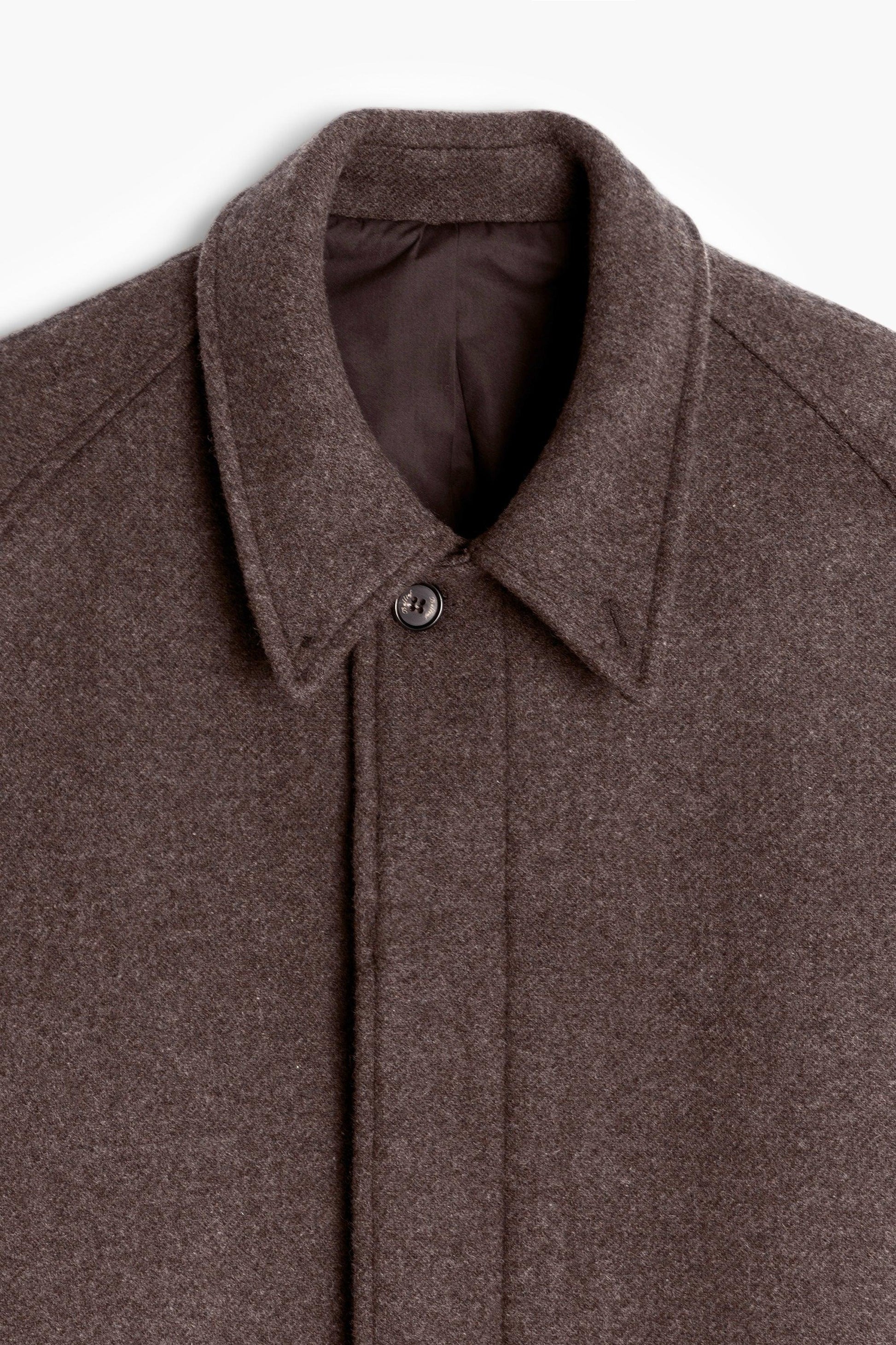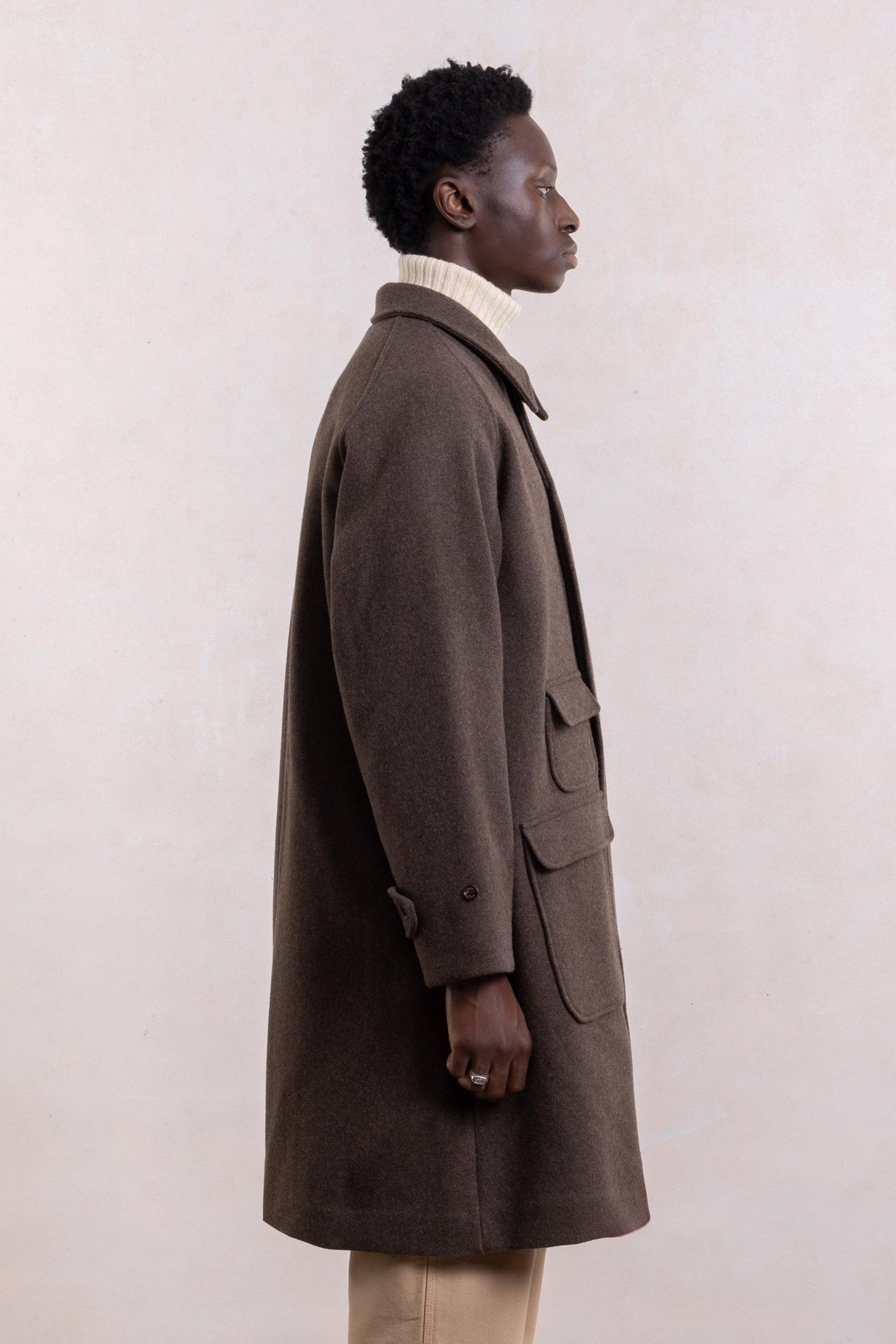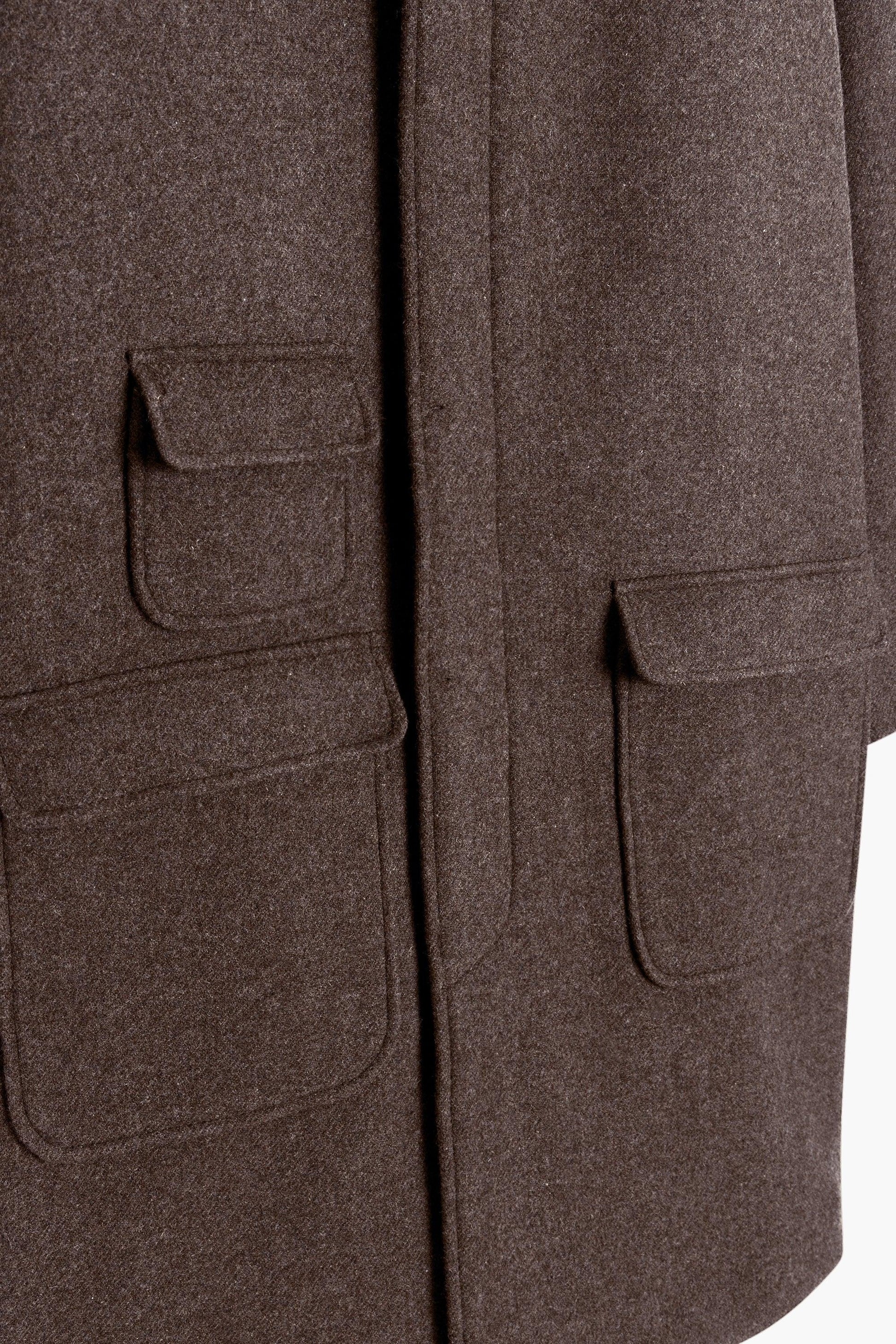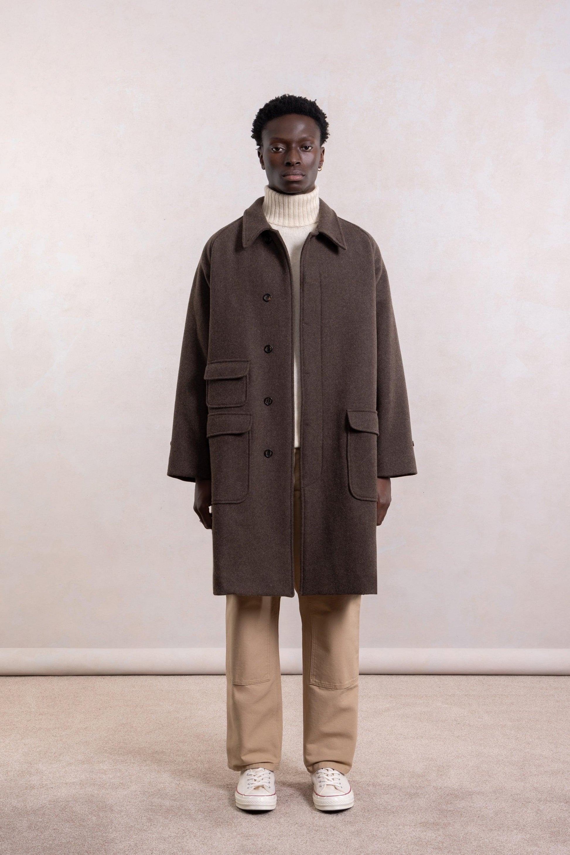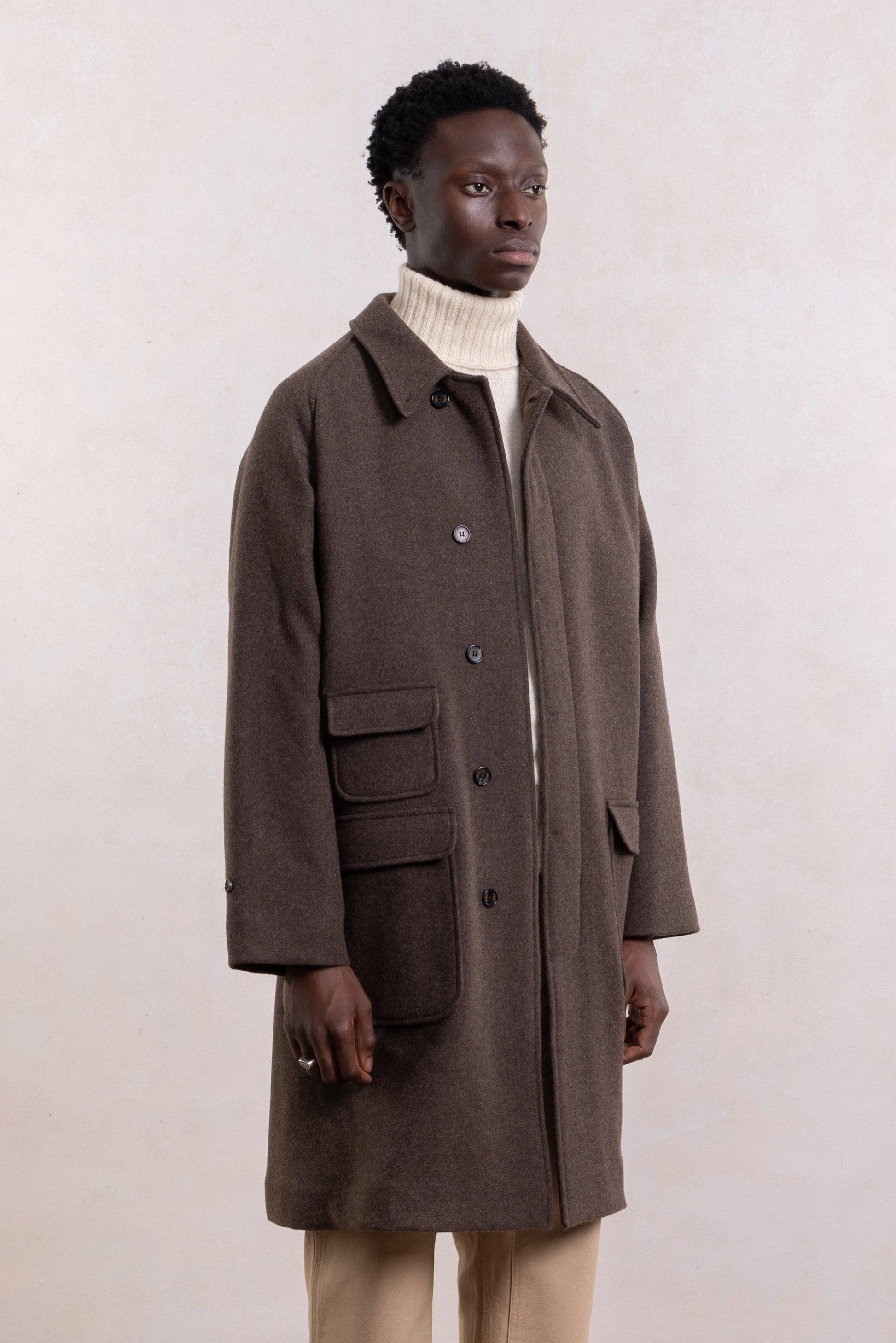 This balmacaan wool coat features a loose, flowing cut, raglan sleeves and three patch pockets. An ideal piece for tackling winter temperatures, adding layers of layering to your looks thanks to its very loose fit.