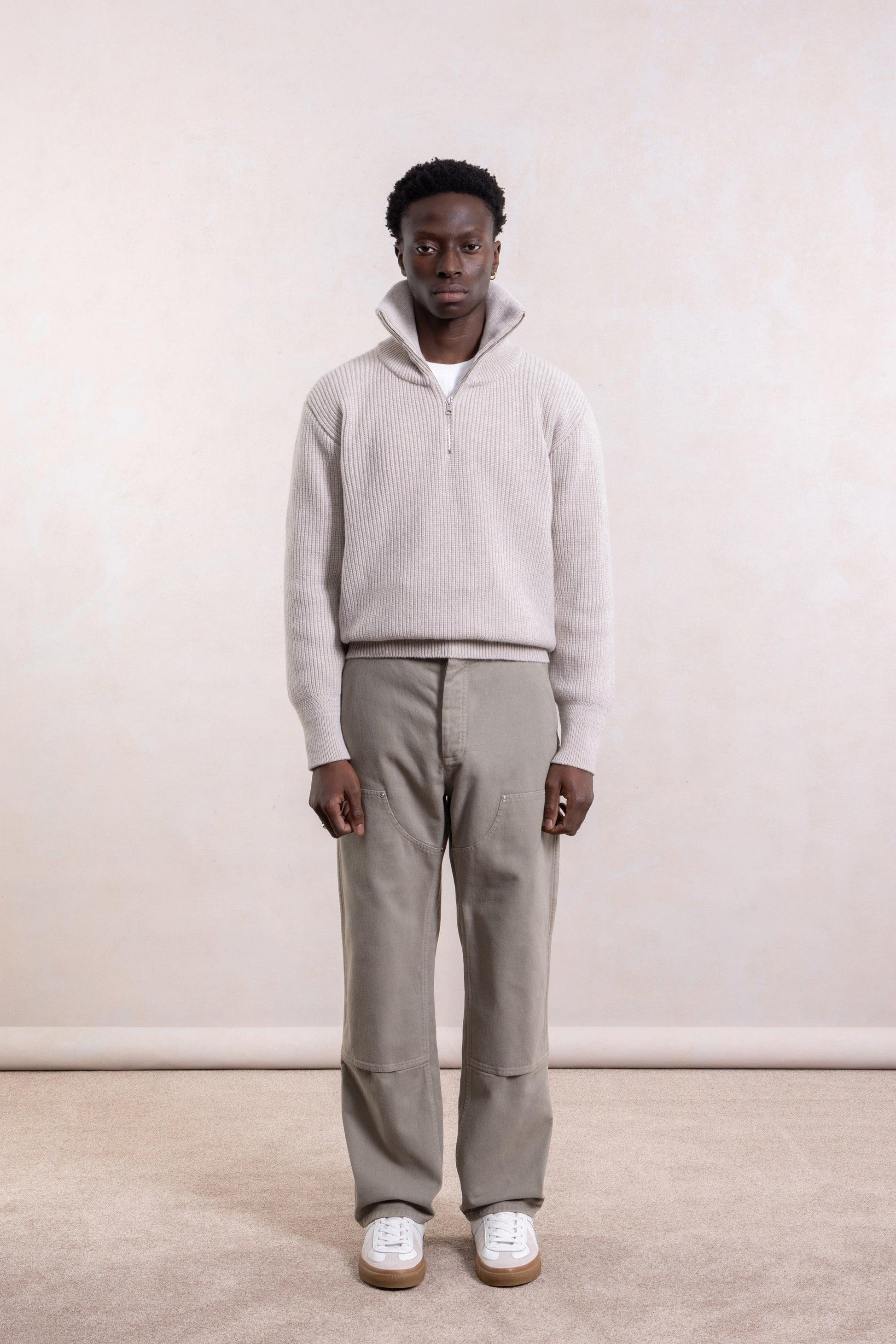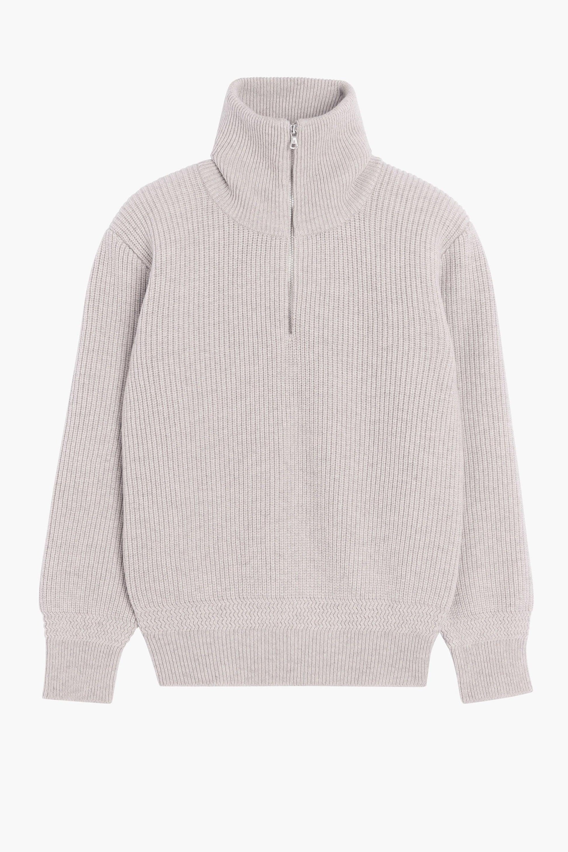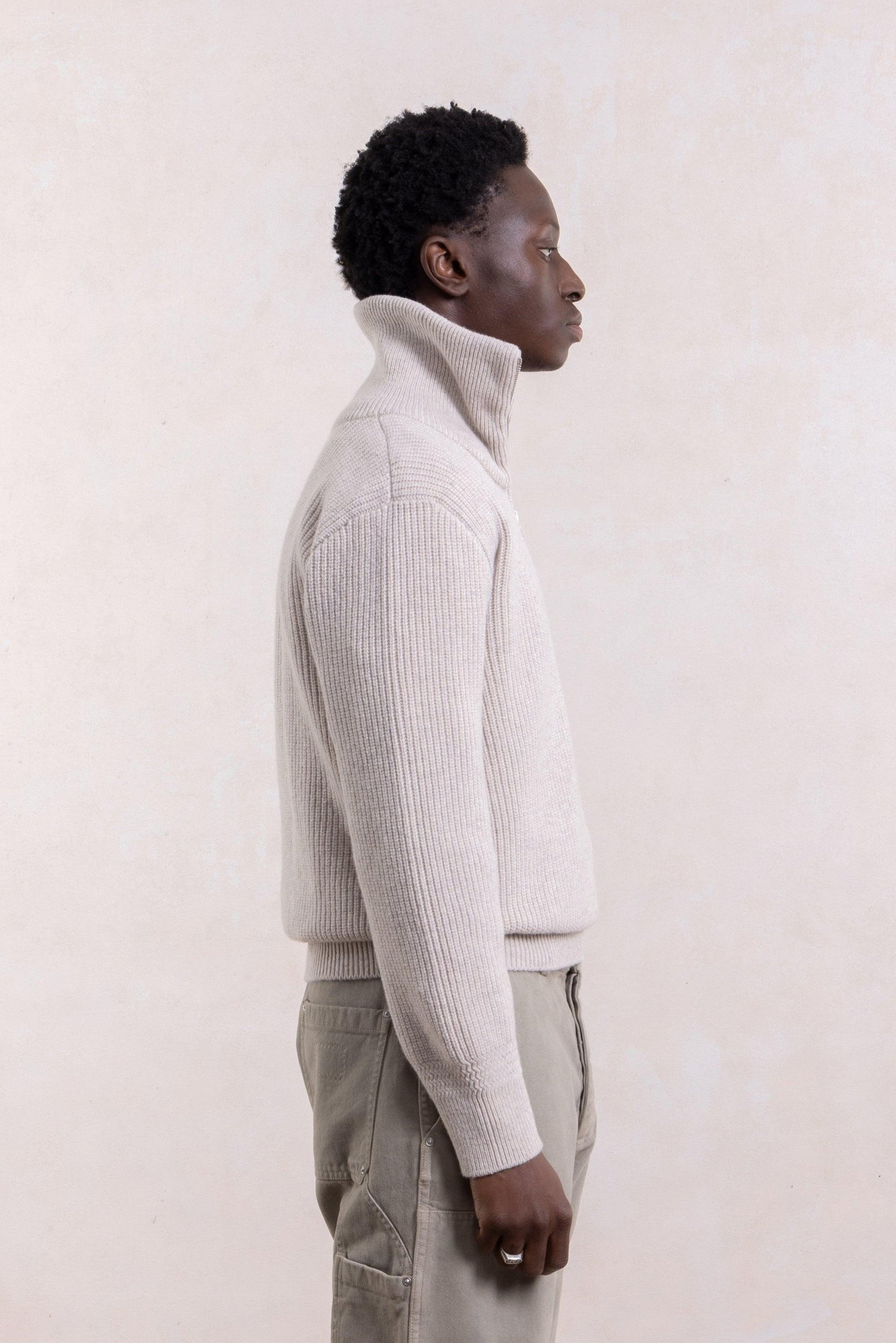Derived from the Deck Sweater, this lambswool sweater adopts a revisited cut with a generous zip-up collar, offering style versatility: worn closed for more warmth or open and folded for a casual look.