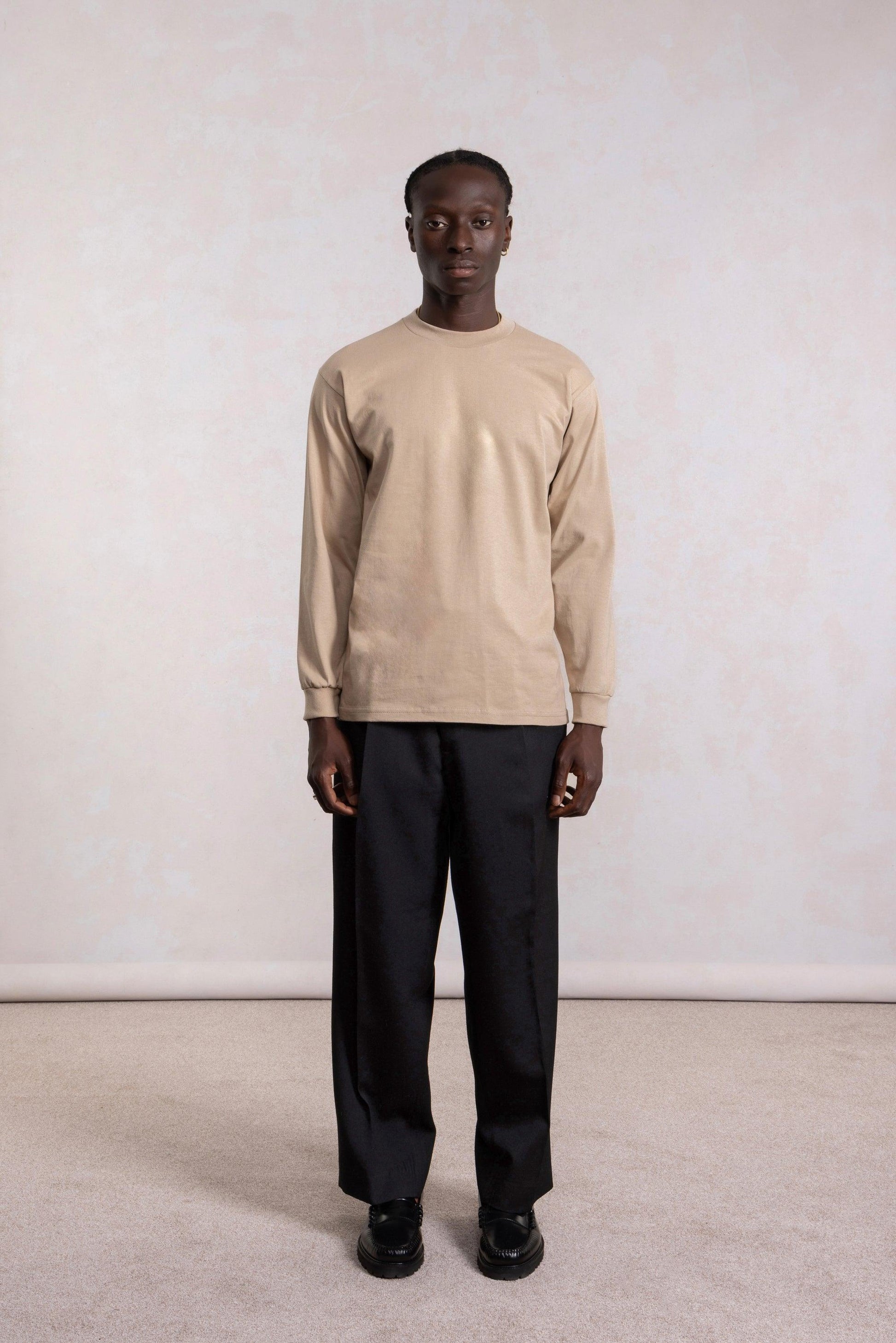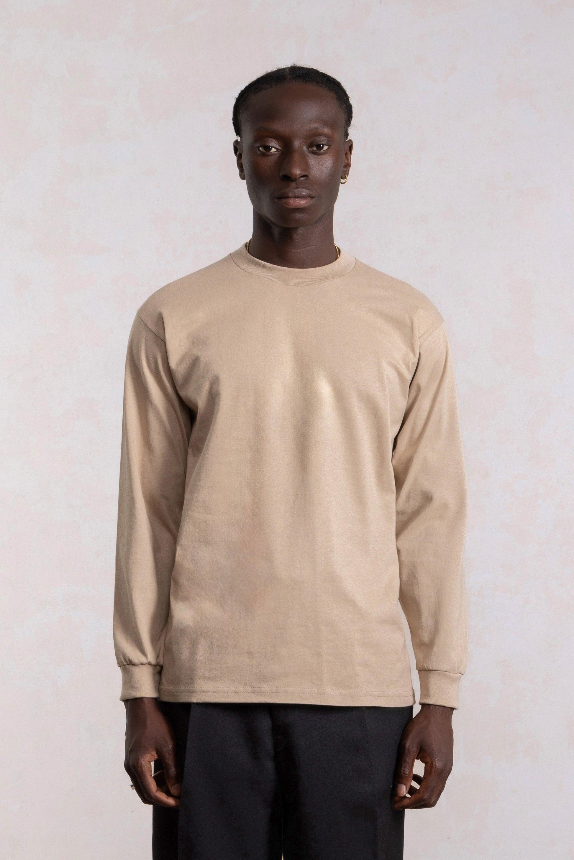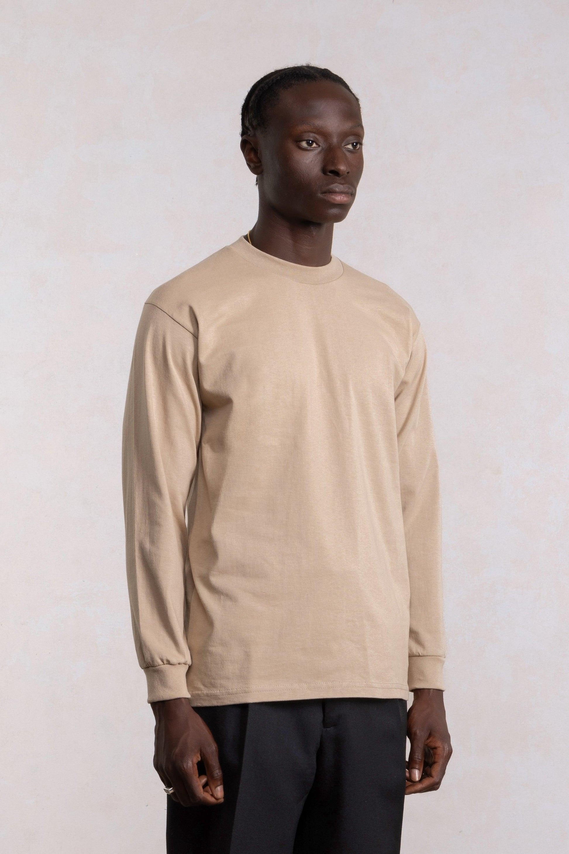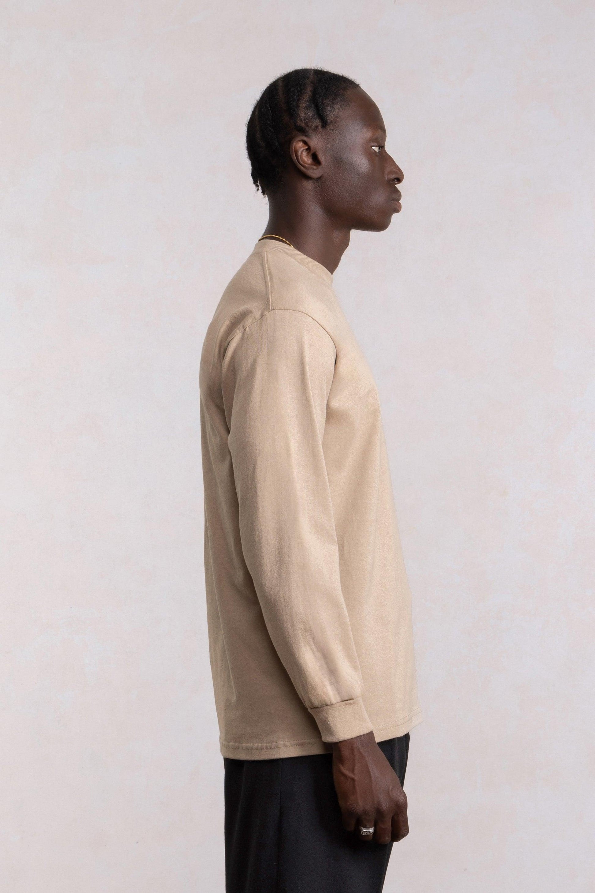True icon, this long-sleeved t-shirt in thick Californian cotton stands out for its robustness, its loose fit and its indeformable collar. Timeless, it retains its shape wash after wash.