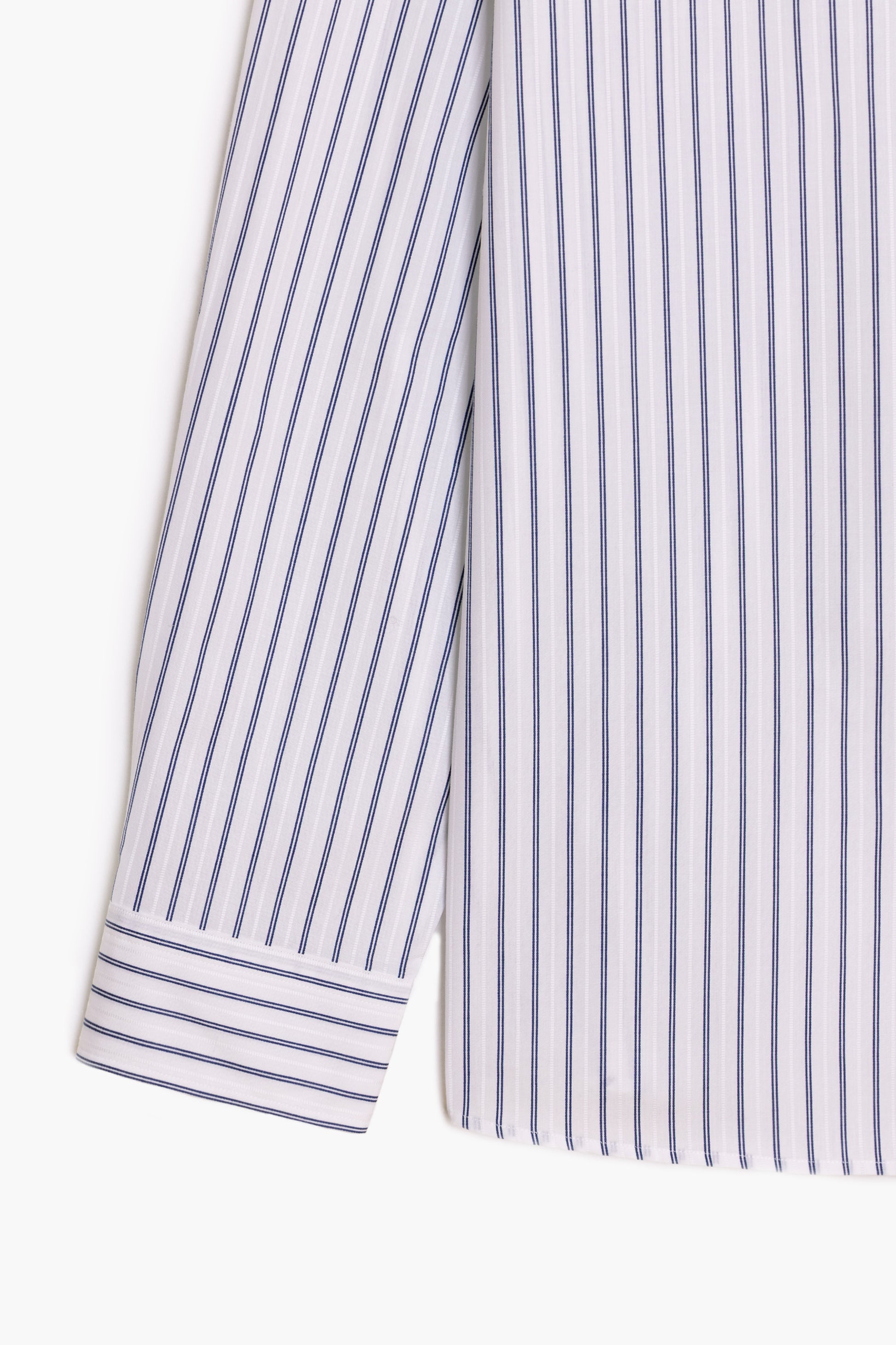 Crafted in Japan from an Egyptian cotton with fine dobby stripes, it stands out with its subtle texture and soft, breathable hand feel.