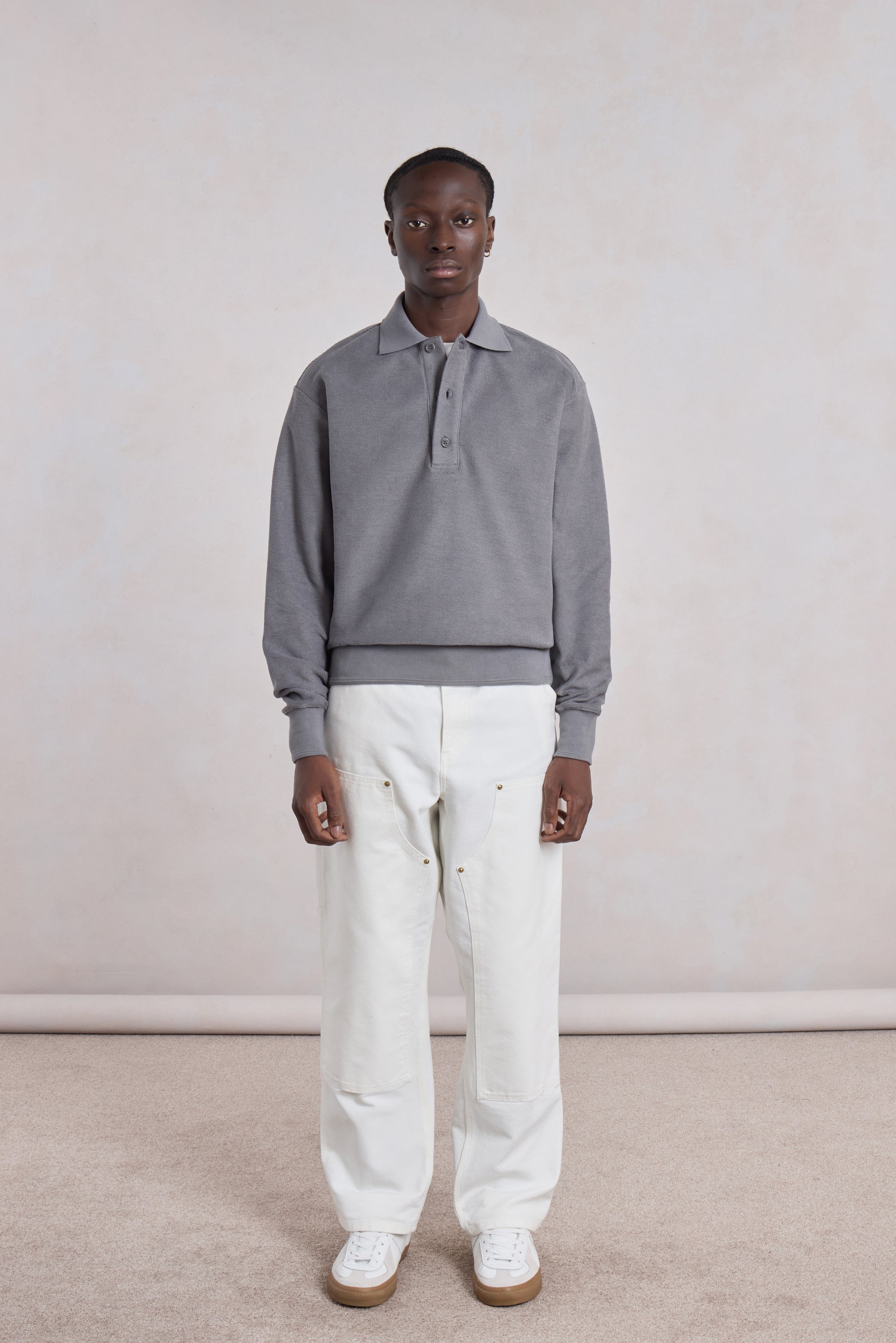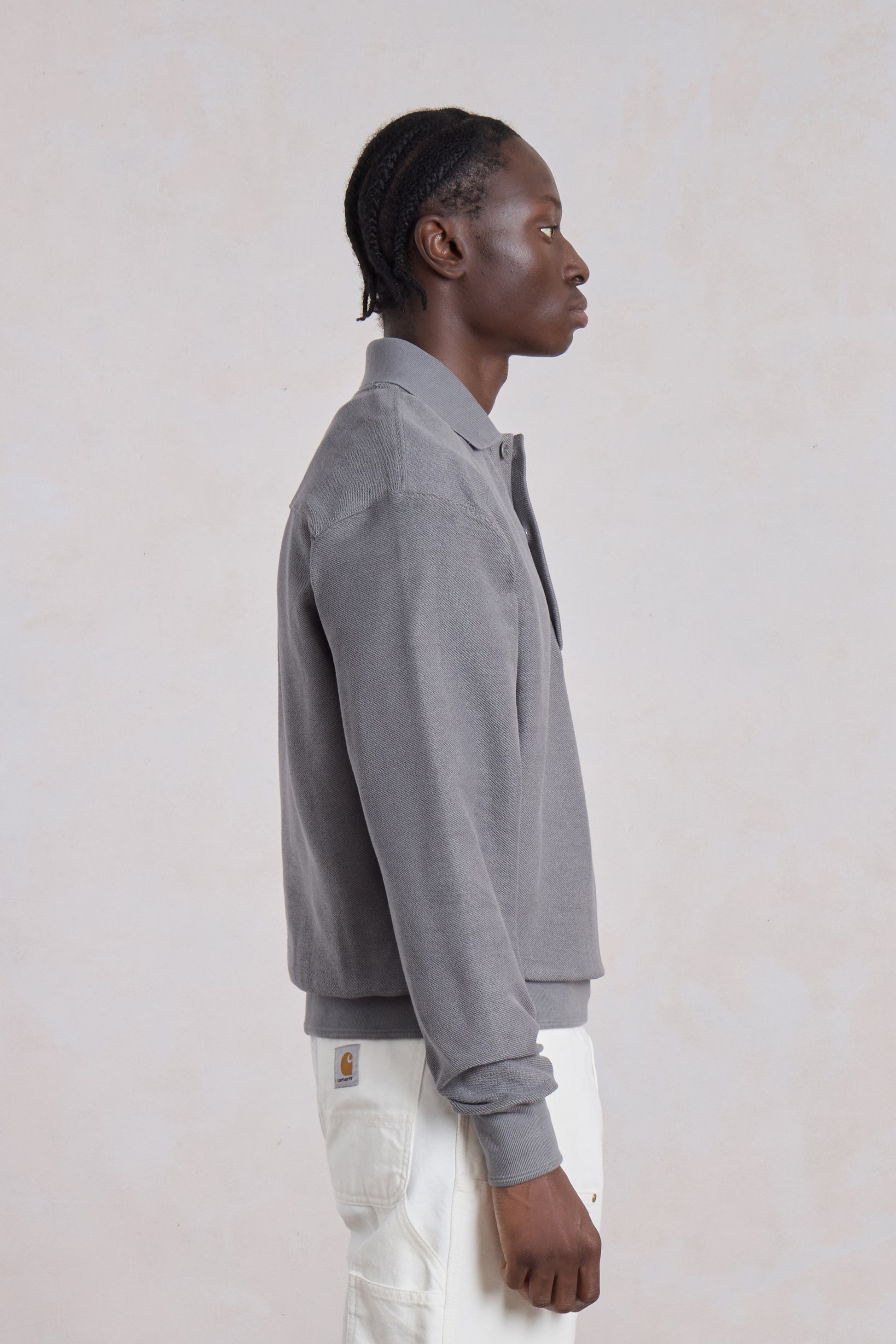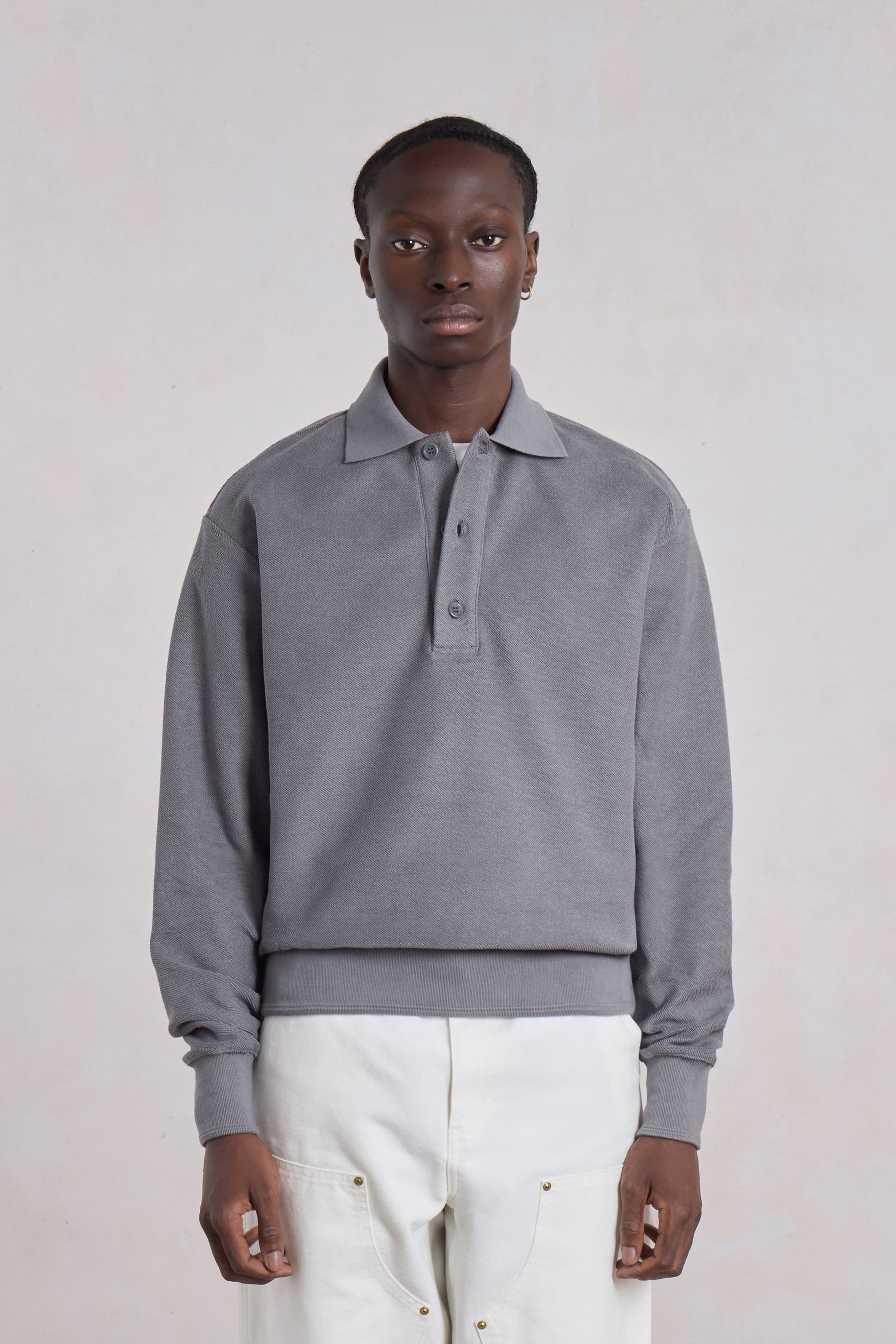 The Reversed Polo Sweatshirt by Museum Garments reinterprets the collegiate polo with a contemporary approach. Made from 100% cotton reverse french terry, it reveals on the outside the loops usually hidden inside, giving the fabric texture and relief. Its straight cut makes it an easy piece to wear every day, with a naturally structured drape.