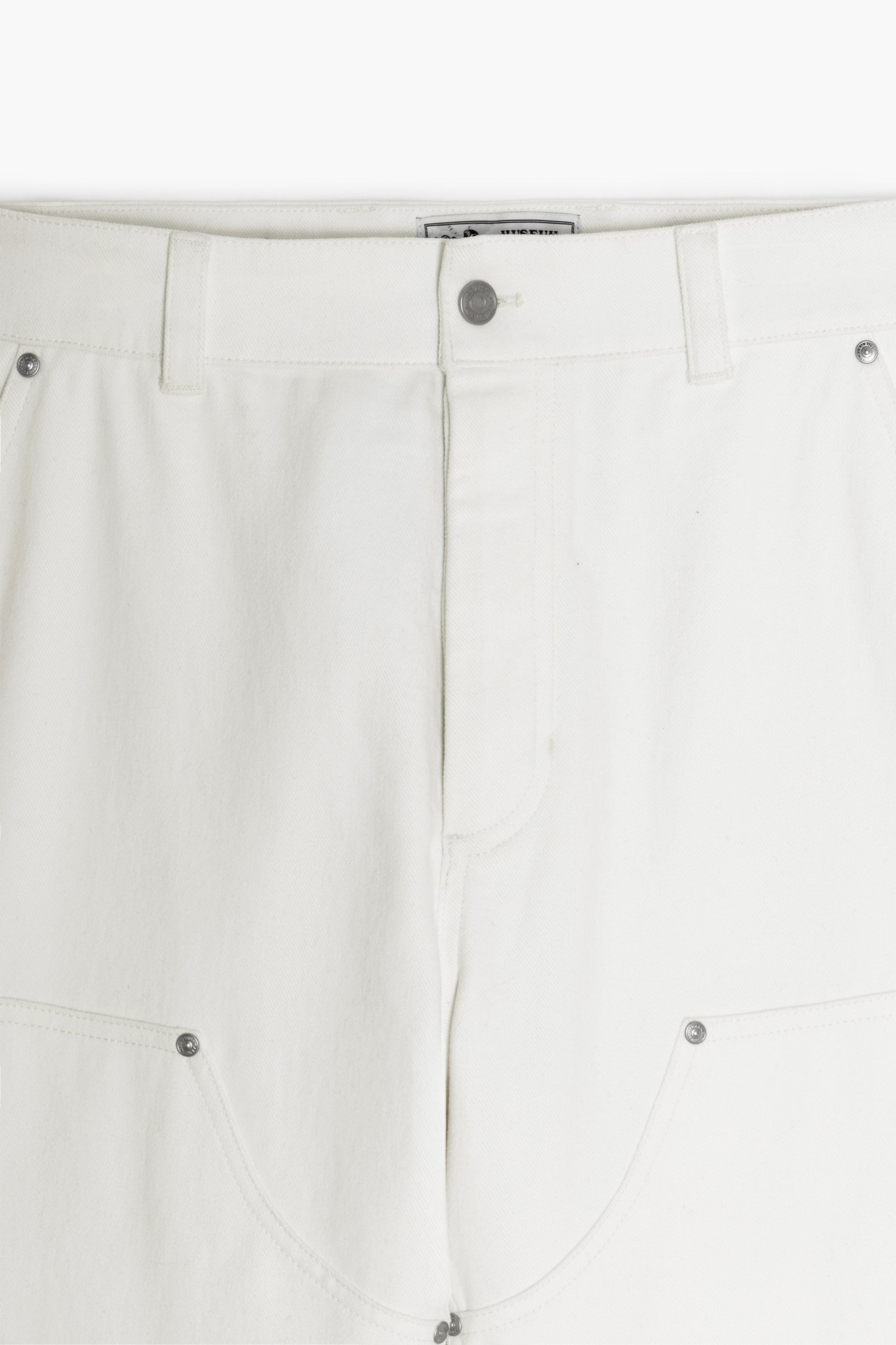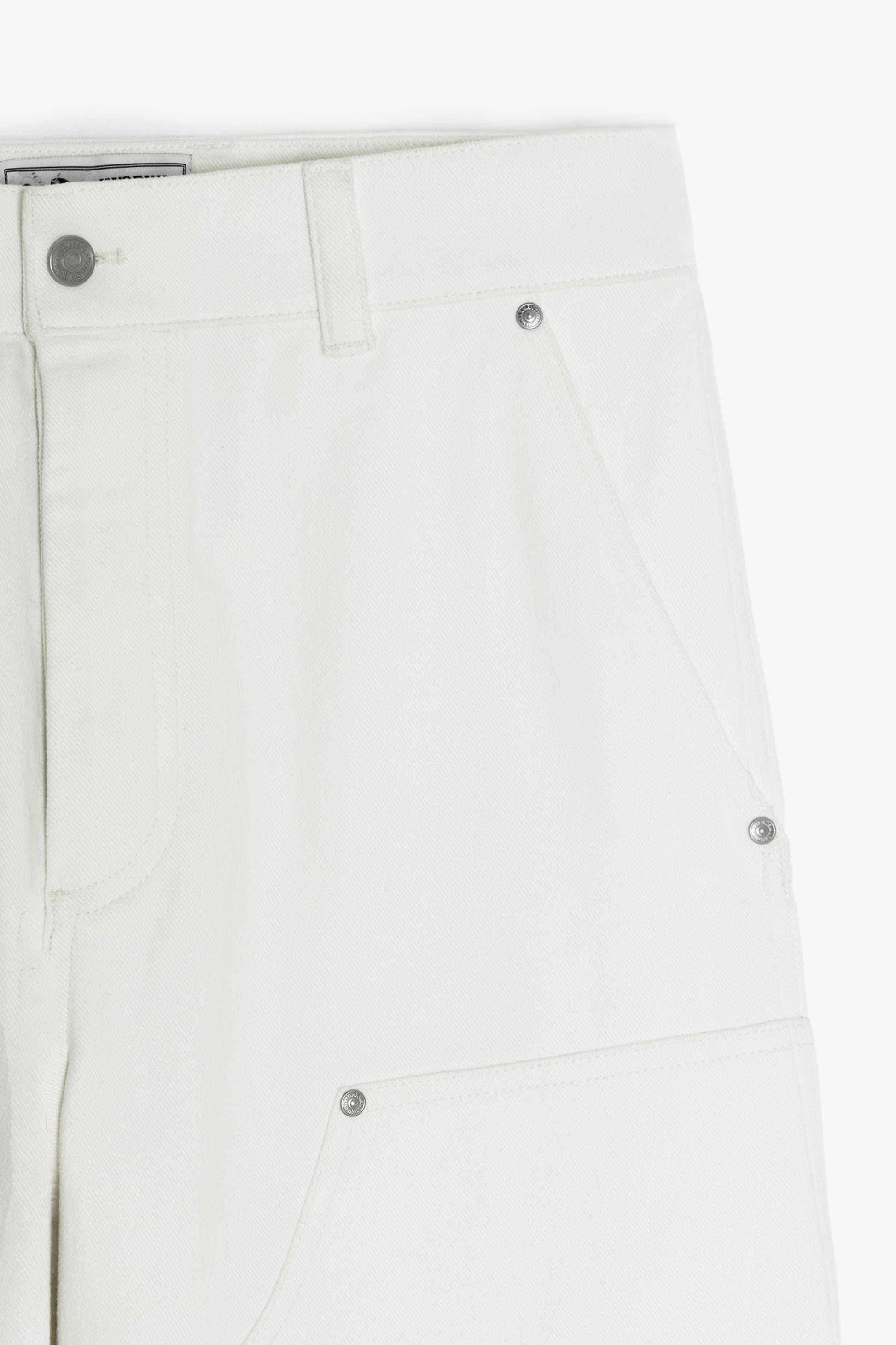 With its loose fit, multiple pockets, and panels secured by metal rivets, it combines functionality and aesthetics.
