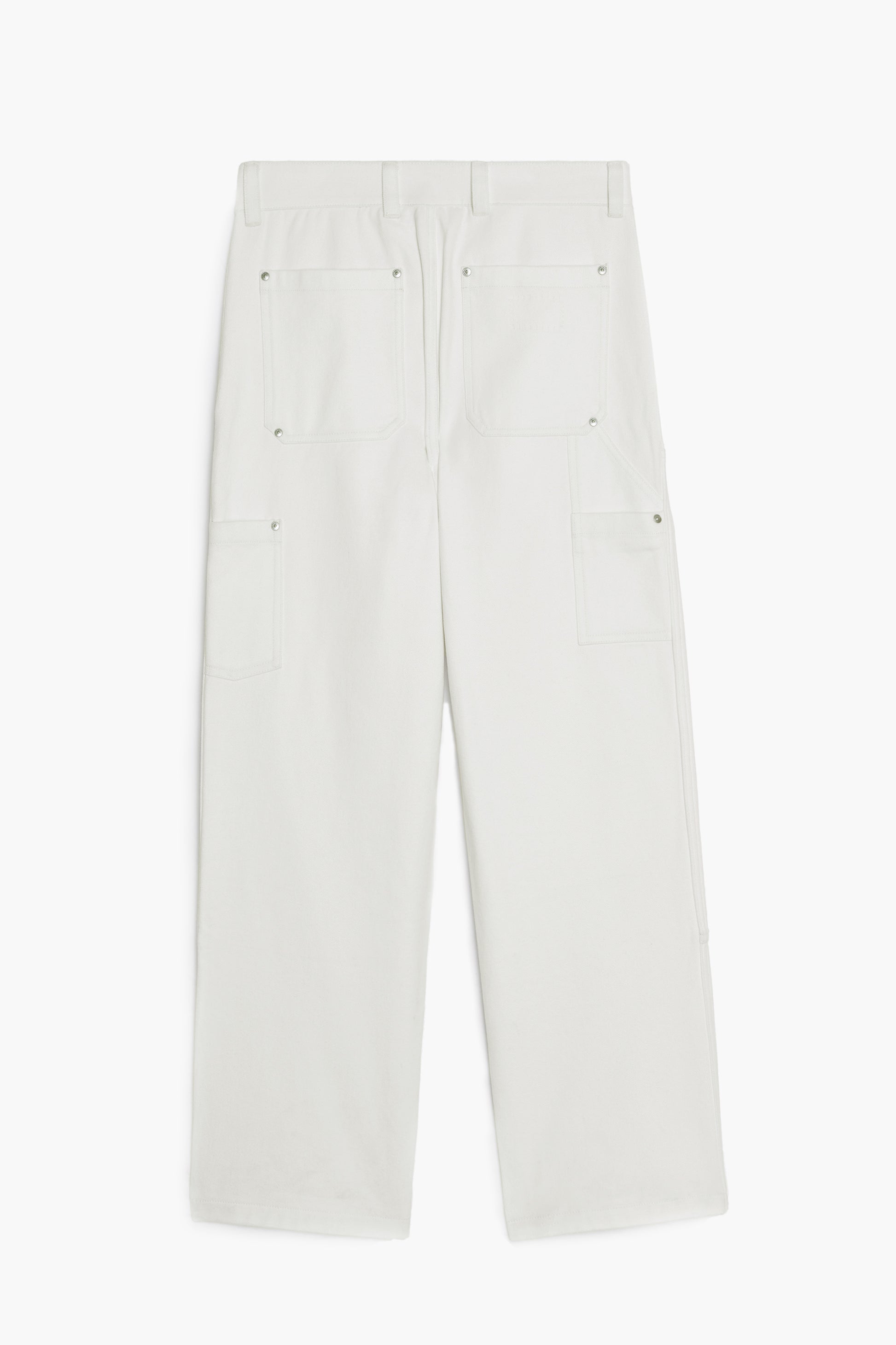 Inspired by "double knee" work pants, this revisited model in peached cotton twill offers a soft, peach-skin texture that brings a luxury dimension to its workwear origins.