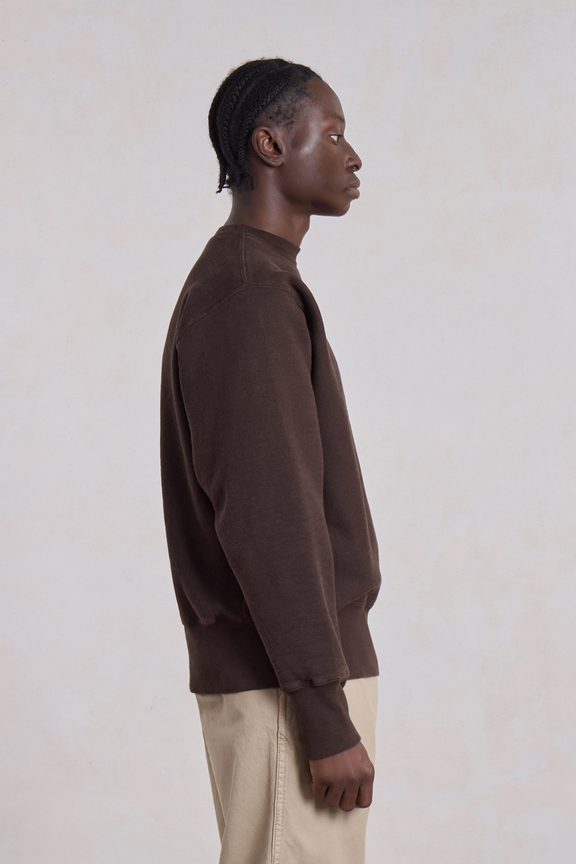 Made from 12 oz (350 g) heavyweight cotton, these sweatshirts are like armor. Designed to offer warmth, resistance and a strong look, they remind us of the raw aesthetics of vintage sweatshirts from the 90s.