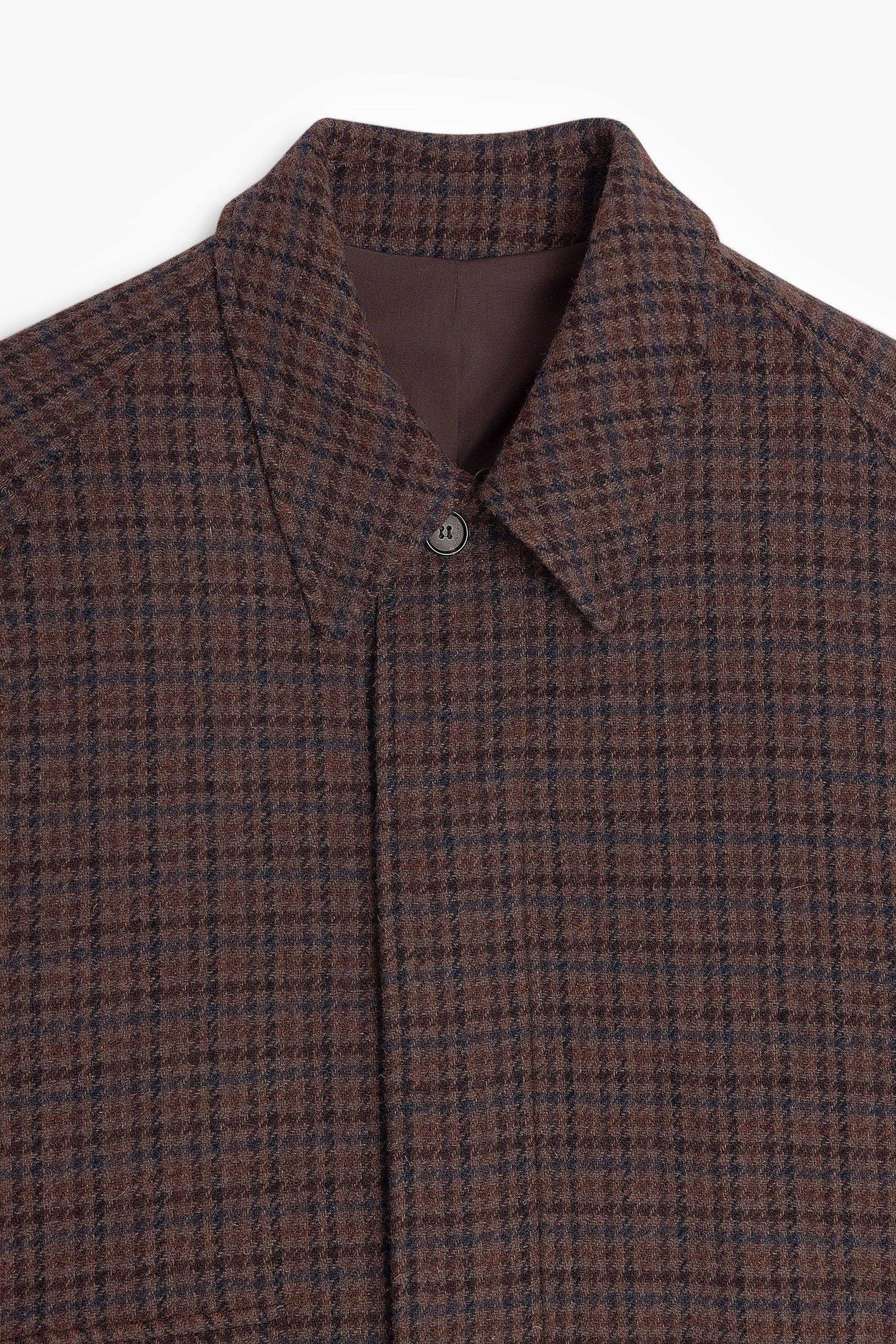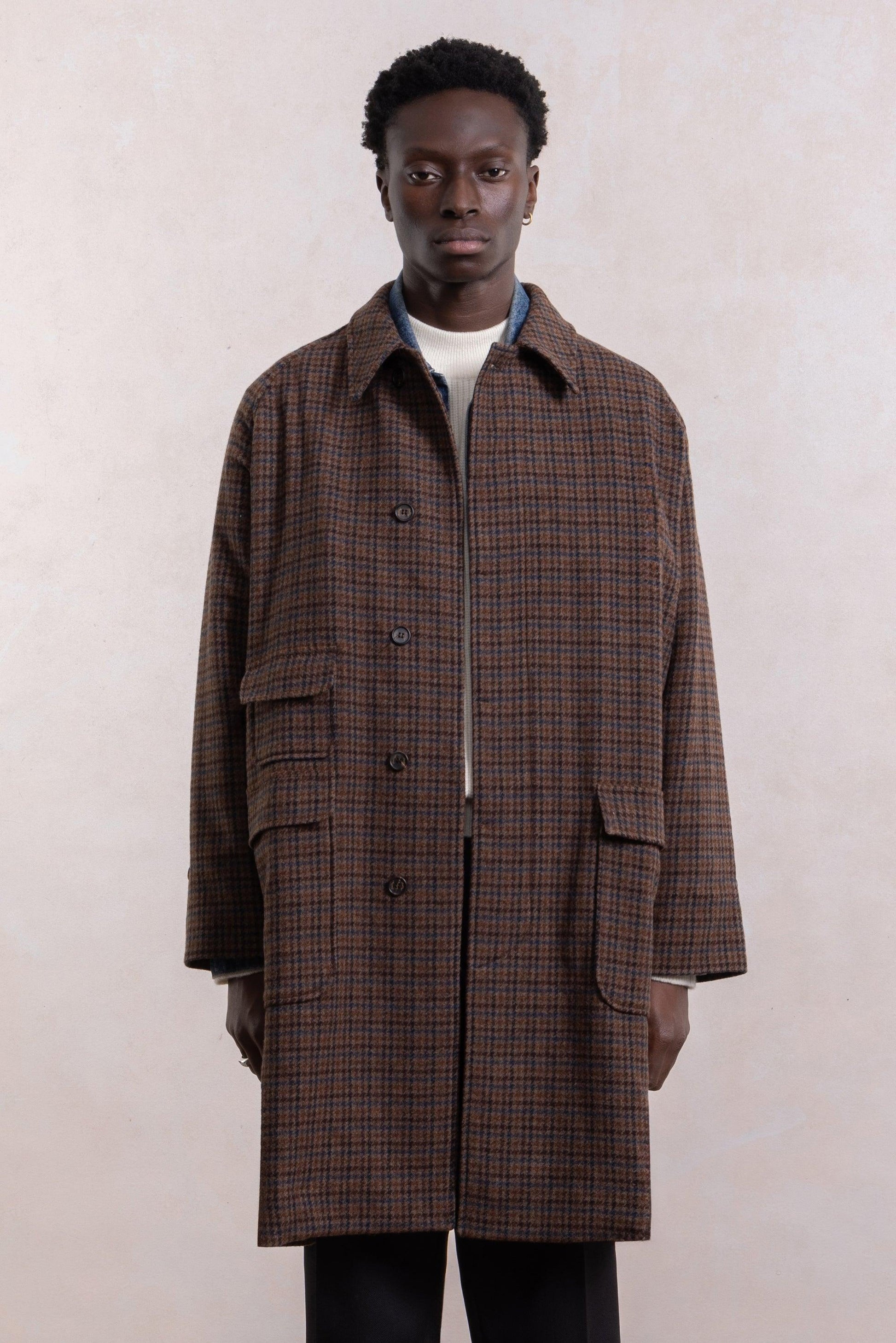 Ce manteau balmacaan en drap de laine se distingue par sa coupe ample et fluide, ses manches raglan et ses trois poches plaquées. Une pièce idéale pour affronter les températures hivernales en ajoutant des couches de layering à vos looks grâce à sa coupe très ample.