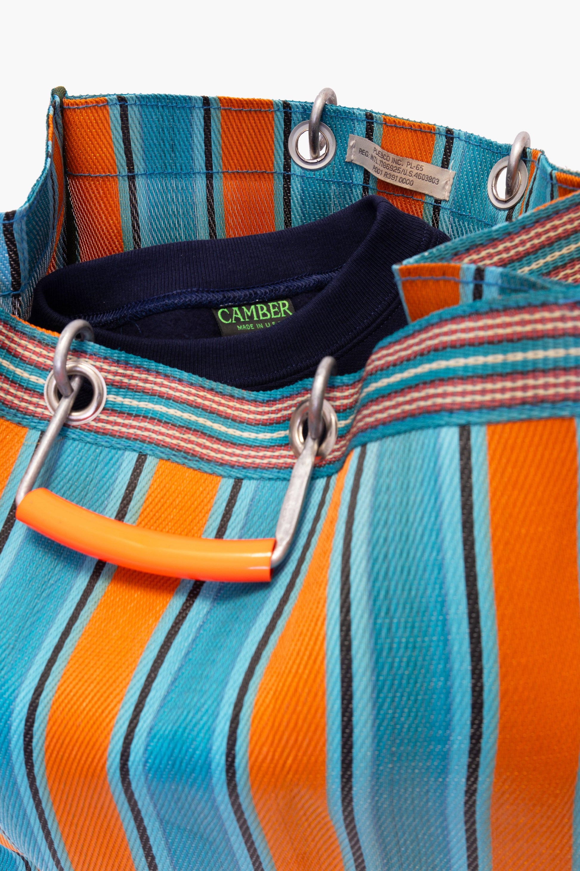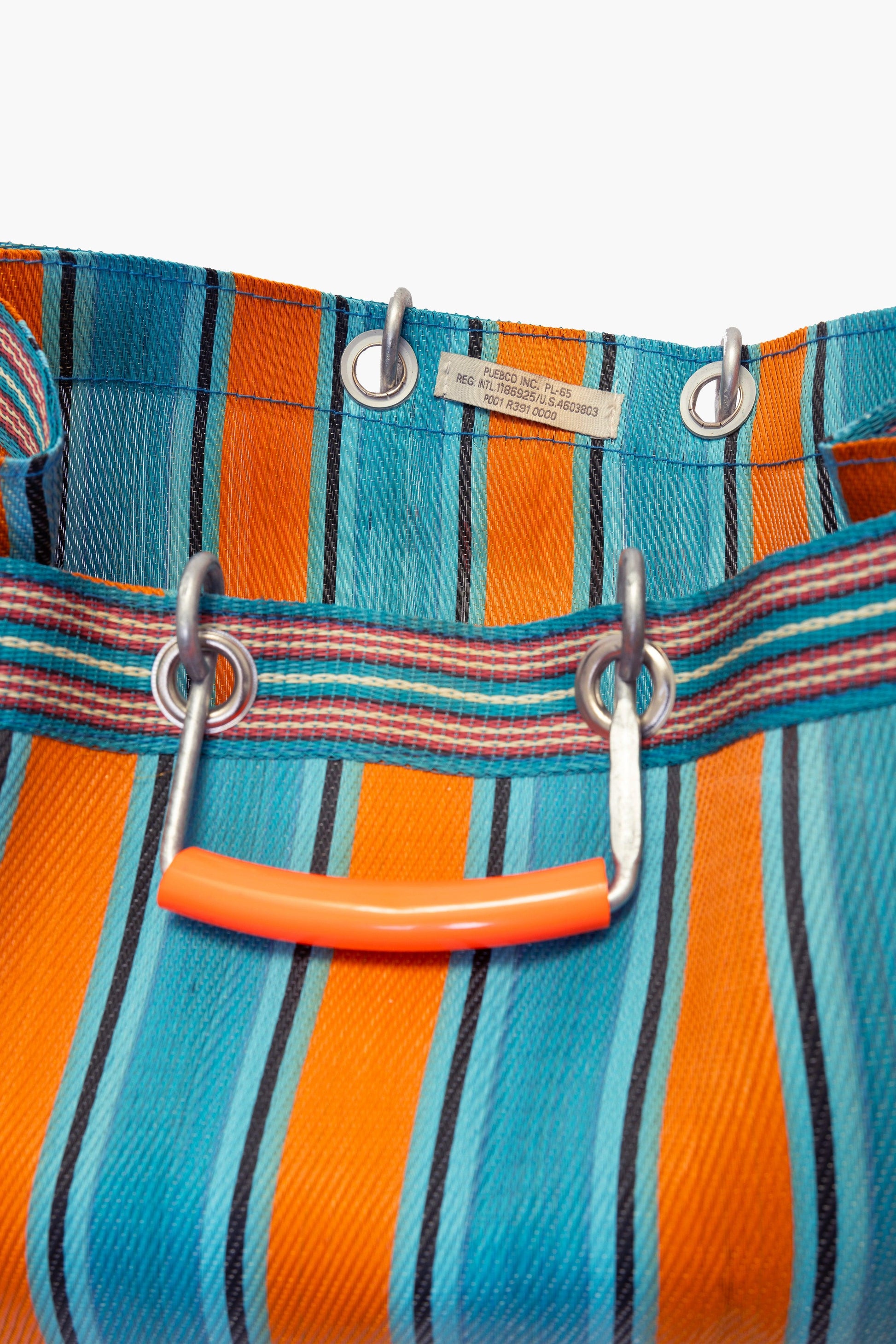Le Market Bag, conçu à partir de toile recyclée de chaises longues de plage, se caractérise par ses teintes éclatantes et son format parfaitement adapté pour vos activités quotidiennes.