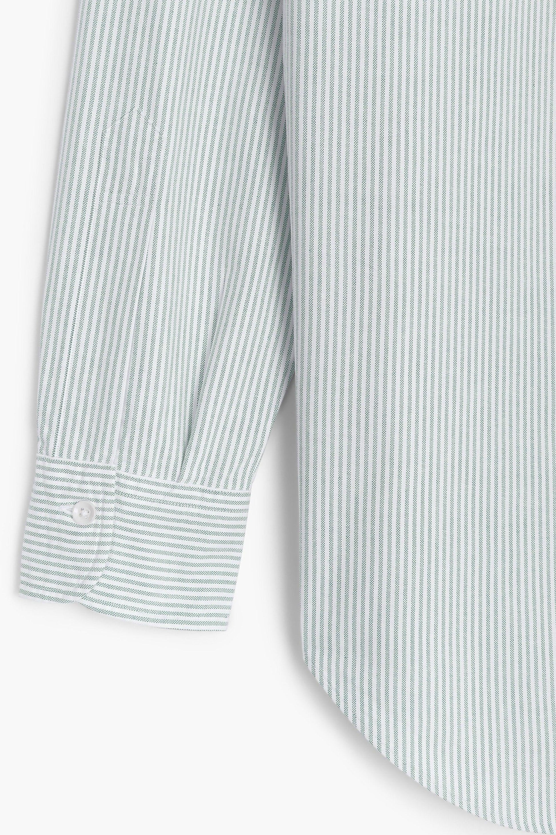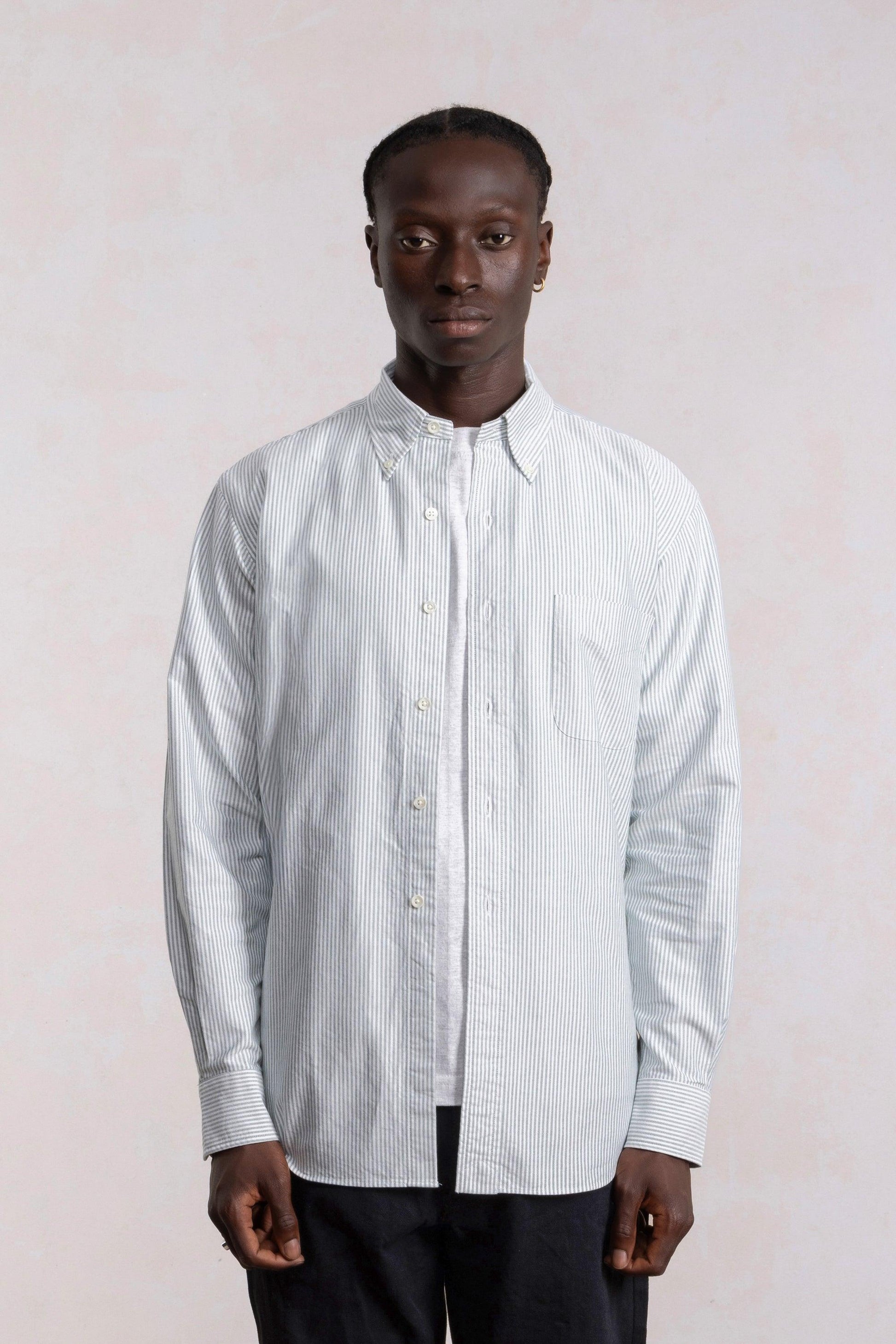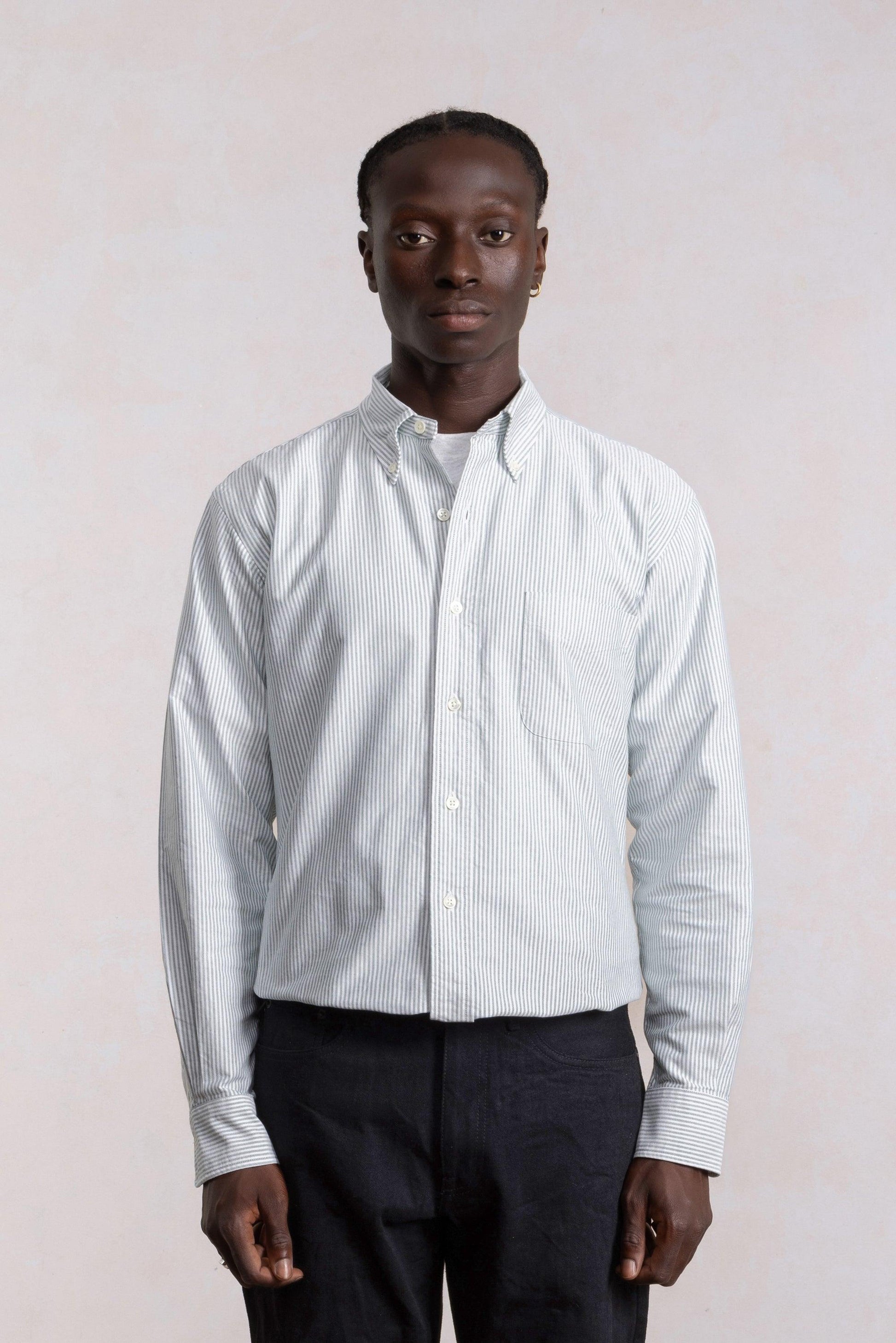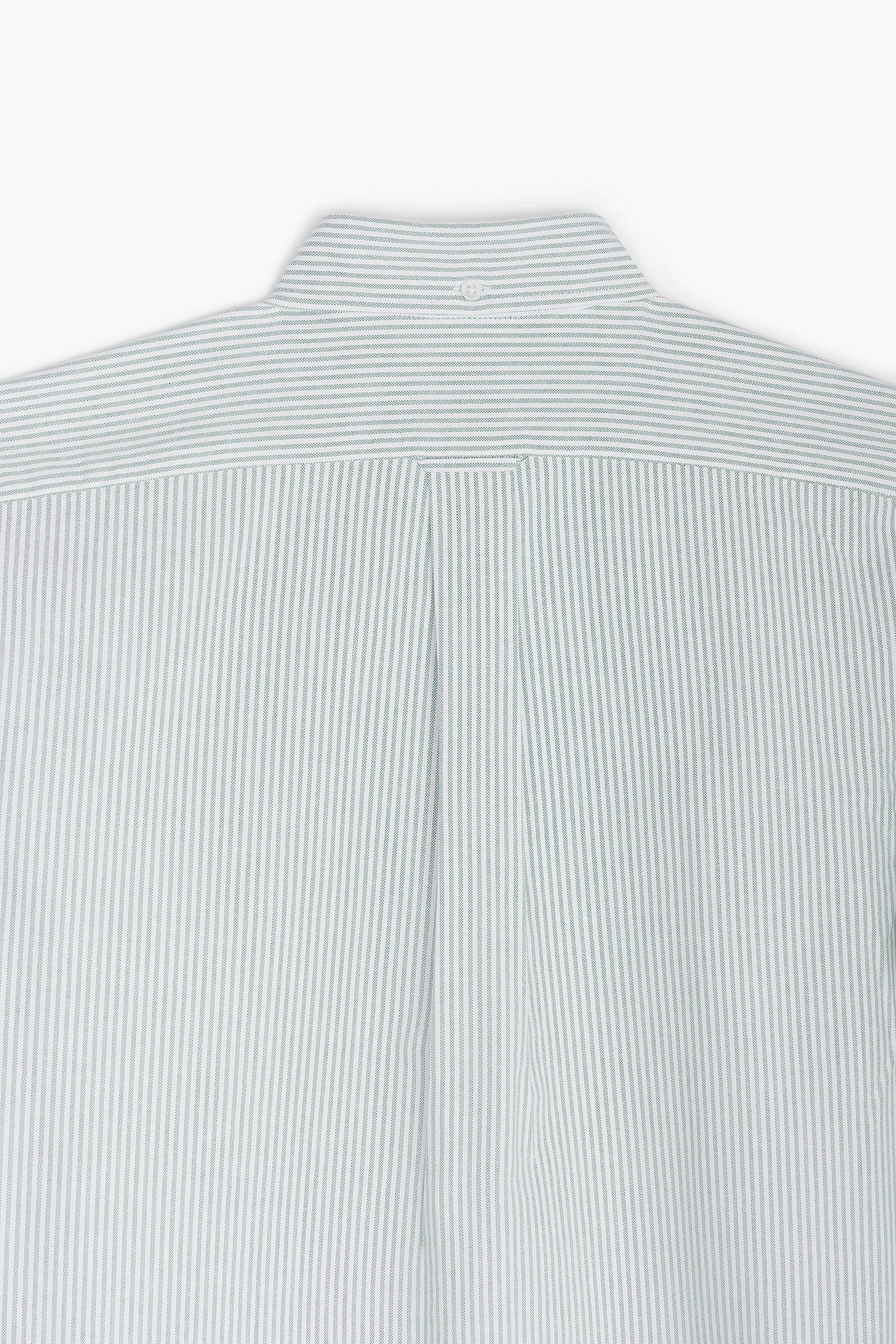 Universitaire strepen Gemaakt in Japan Gestreept Oxfordkatoen (150 g/m²): 100% katoen Materiaalherkomst: Japan Kraag met knoopjes Amerikaanse sluiting Borstzak Rugpand met plooi en lockerlus Licht getailleerde snit Natuurlijke parelmoeren knopen Kamakura-referentie: VIVY2041 Kleur: Groen/wit