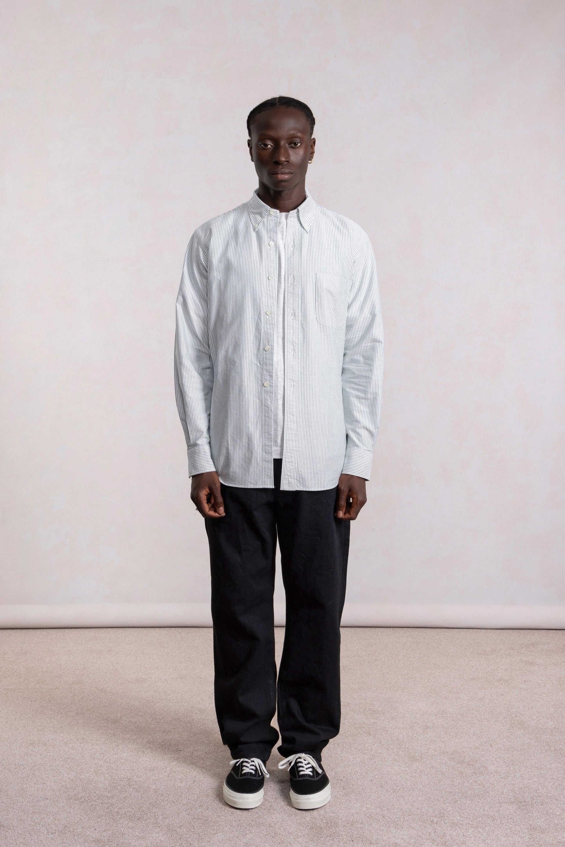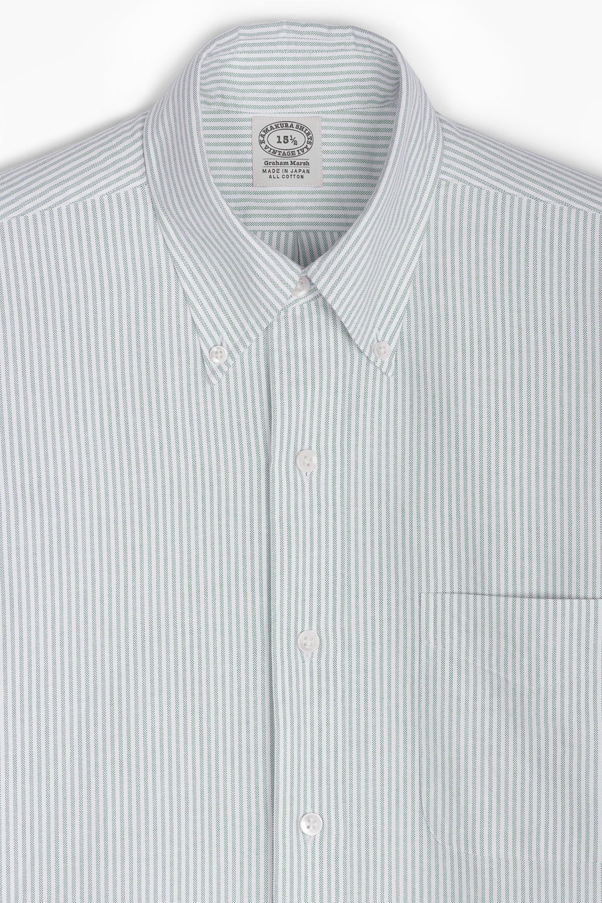 Een symbool van uitzonderlijk vakmanschap: dit gestreepte Oxford-overhemd toont de precisie van technieken die specifiek zijn voor de Kamakura-regio, waaraan het merk zijn naam ontleent.