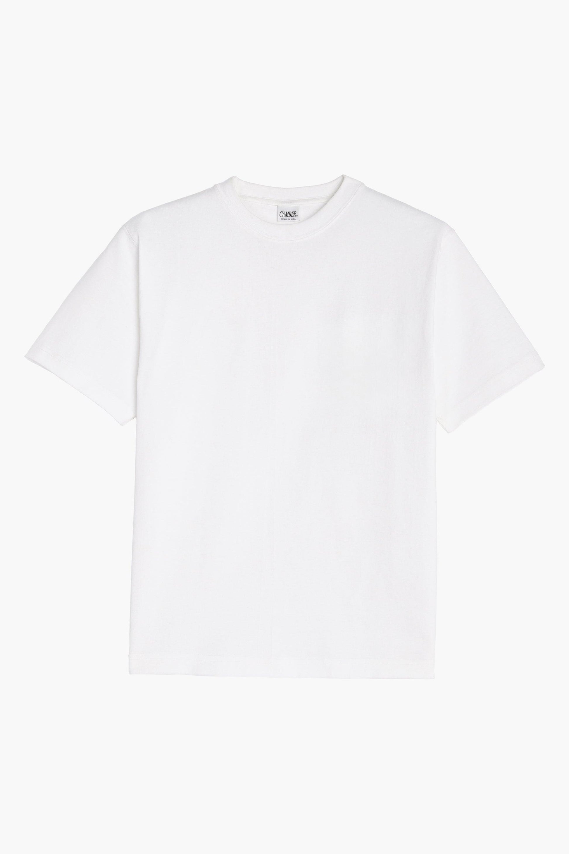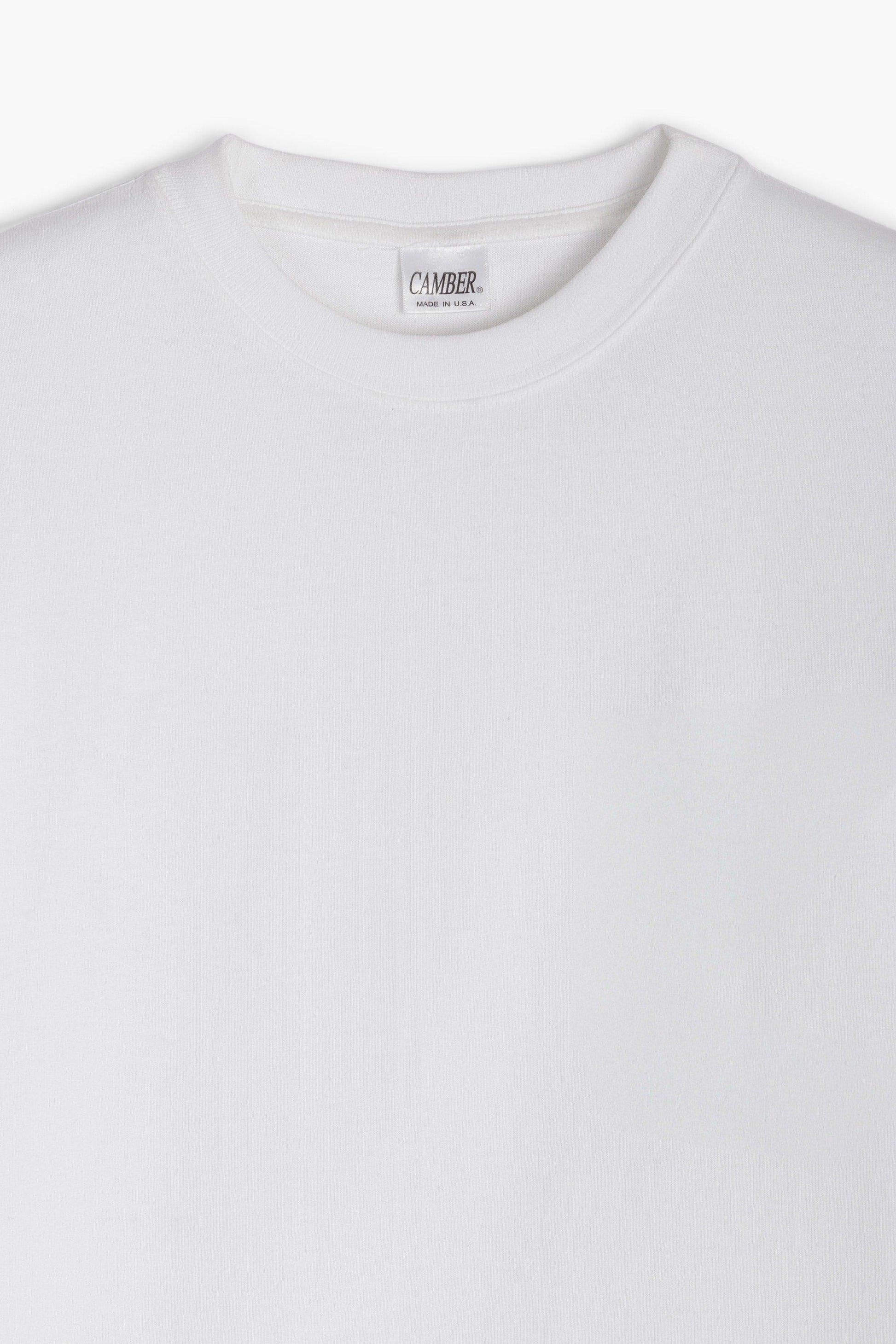 Iconische Camber ultrazware katoenen jersey: 8 oz (225 g) 100% katoen Katoenherkomst: VS Tubulair (naadloos) Dikke geribbelde kraag Kleur: Wit CAMBER-referentie: 301 Handgemaakt in de VS