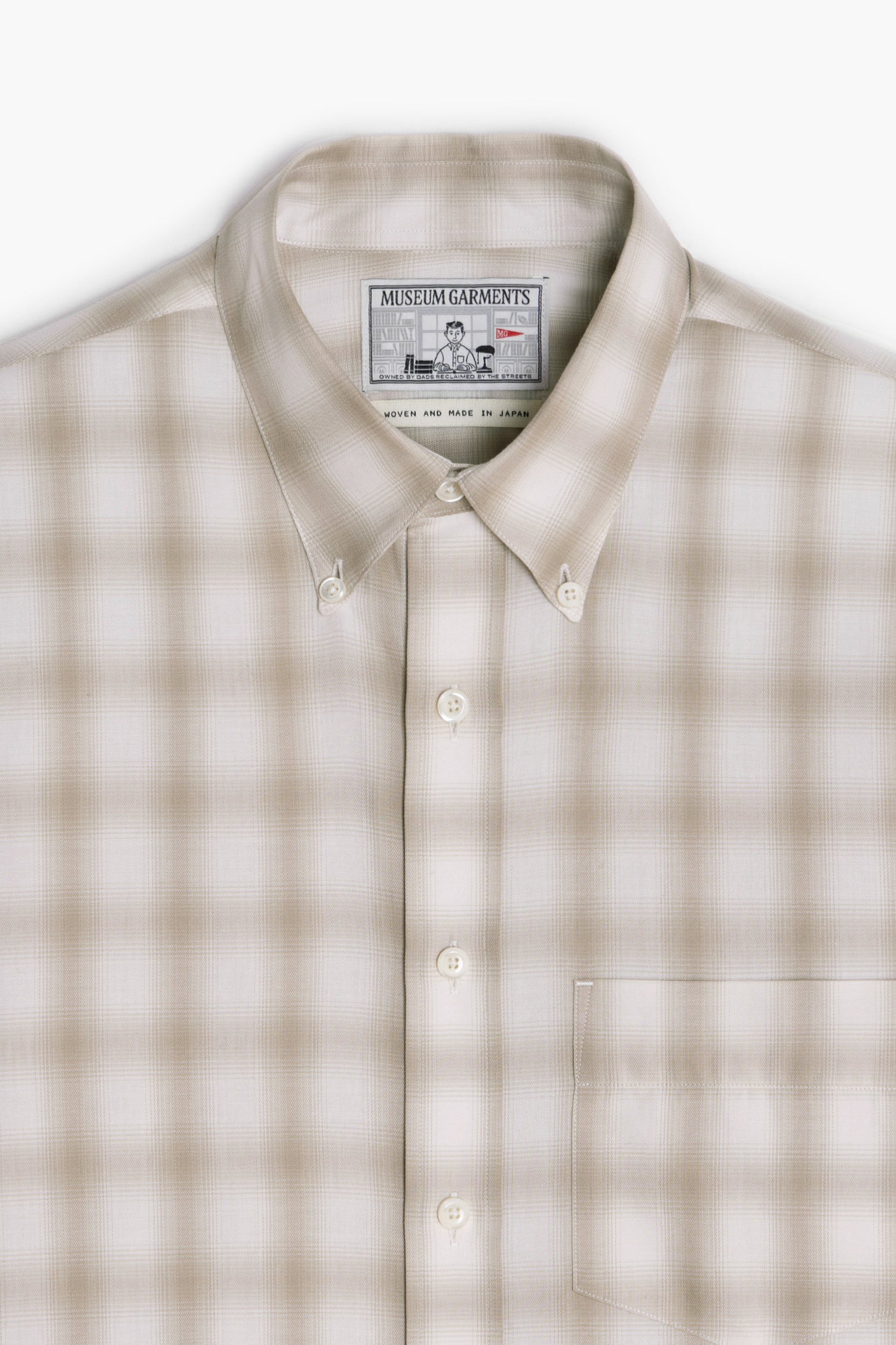 Confectionnée au Japon dans une toile de coton biologique, elle offre une main souple et respirante, tandis que son motif carreaux ombrés beige/natural apporte une profondeur graphique subtile.