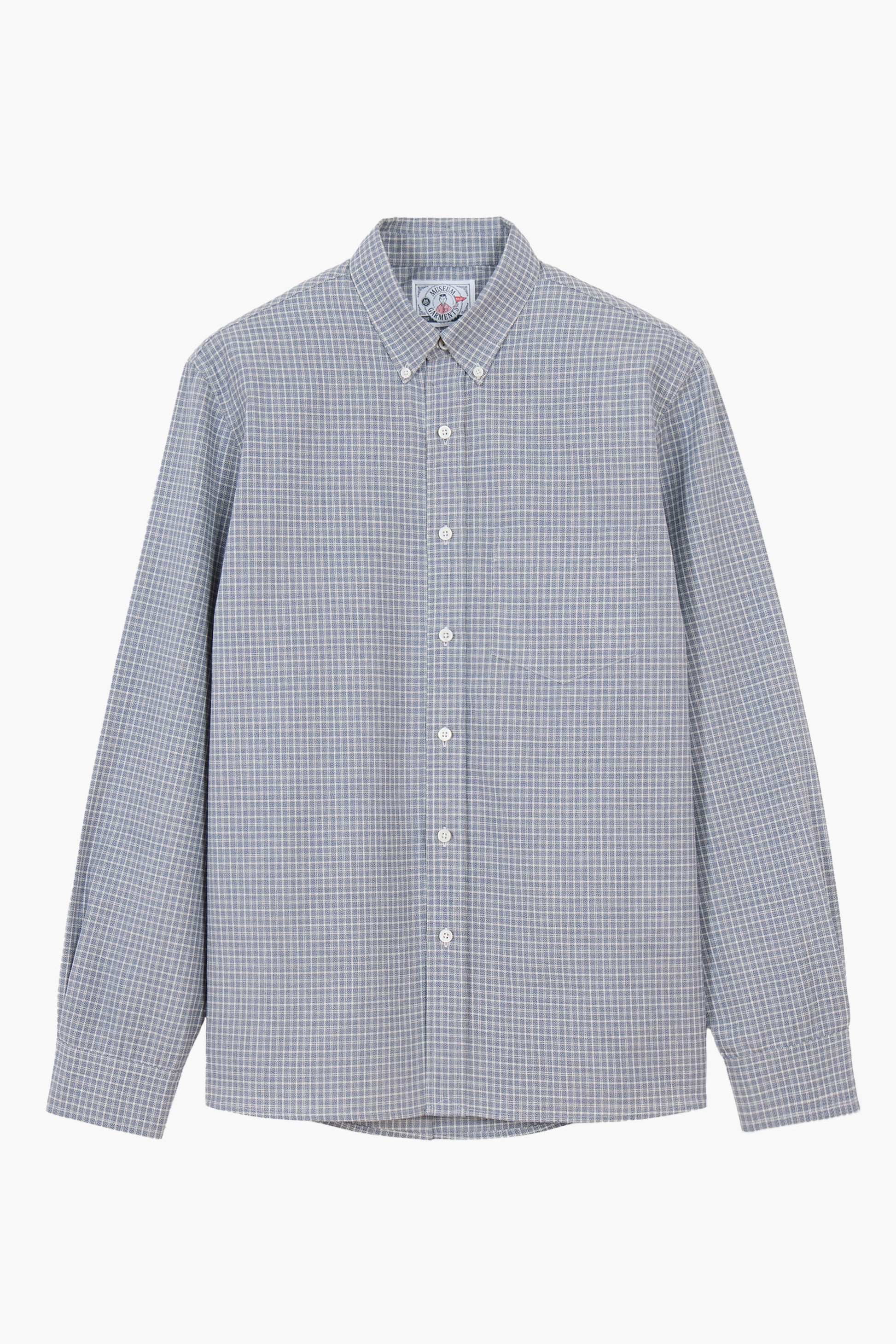 Née de l’esthétique Button-Down popularisée sur les campus américains et adoptée par les amateurs d’Ametora — ce style nourri par le vestiaire américain traditionnel — cette chemise se décline ici dans une coupe relaxed. Taillée dans une toile de coton à carreaux bleu et blanc, elle séduit par son toucher doux et duveteux.