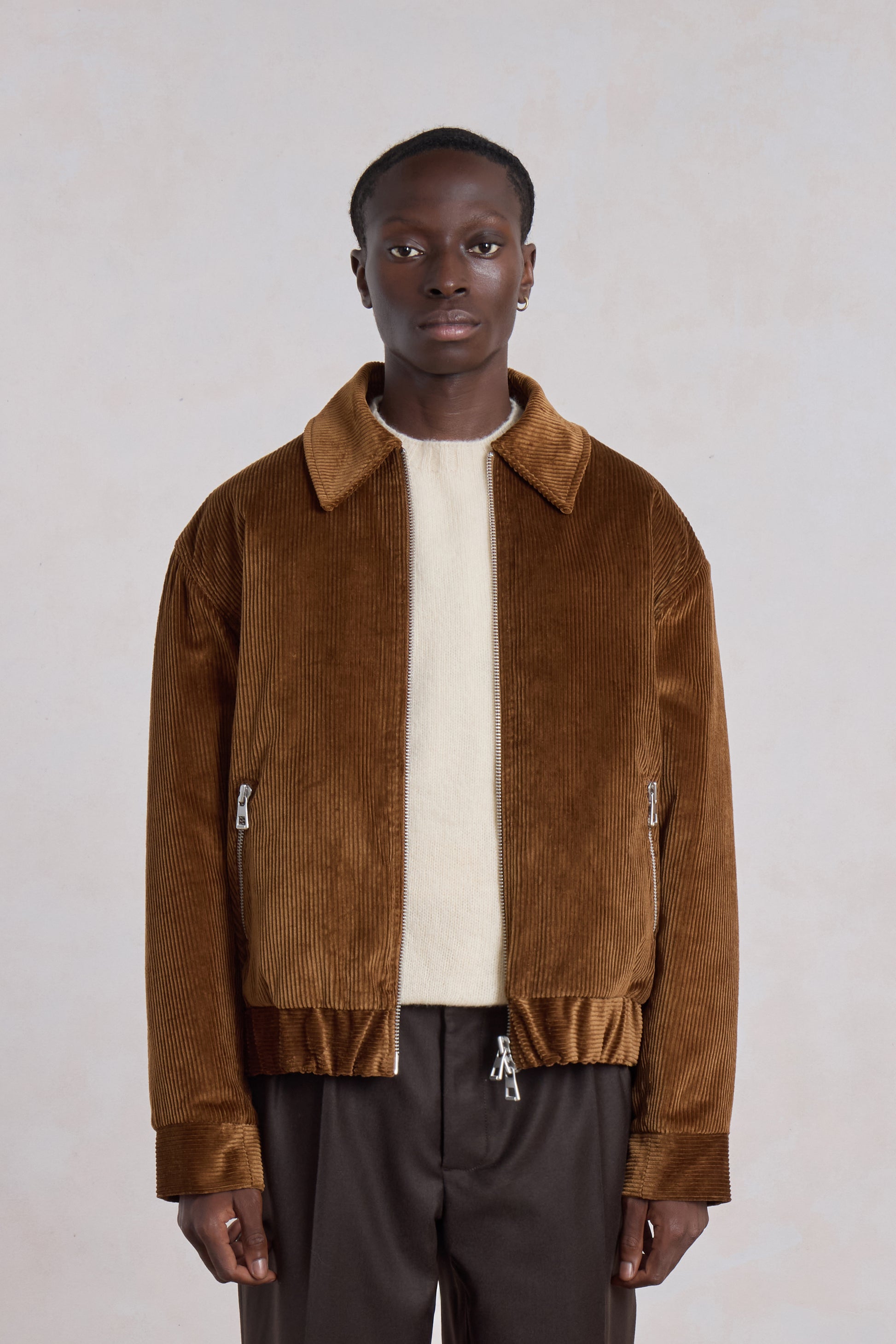 L'Exhibition Jacket de Museum Garments est un blouson en velours côtelé italien entièrement matelassé. Sa coupe boxy et sa taille élastiquée assurent une silhouette ample et structurée, tandis que les soufflets d’aisance au dos ajoutent de la liberté de mouvement.