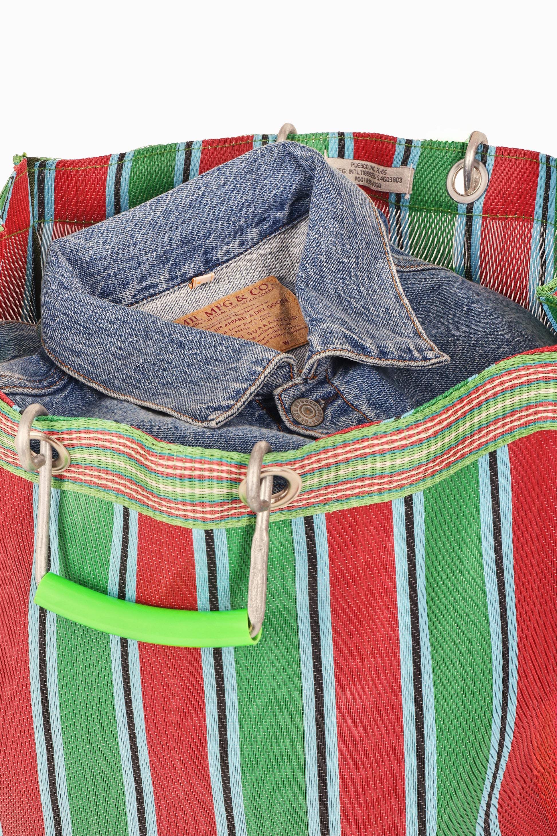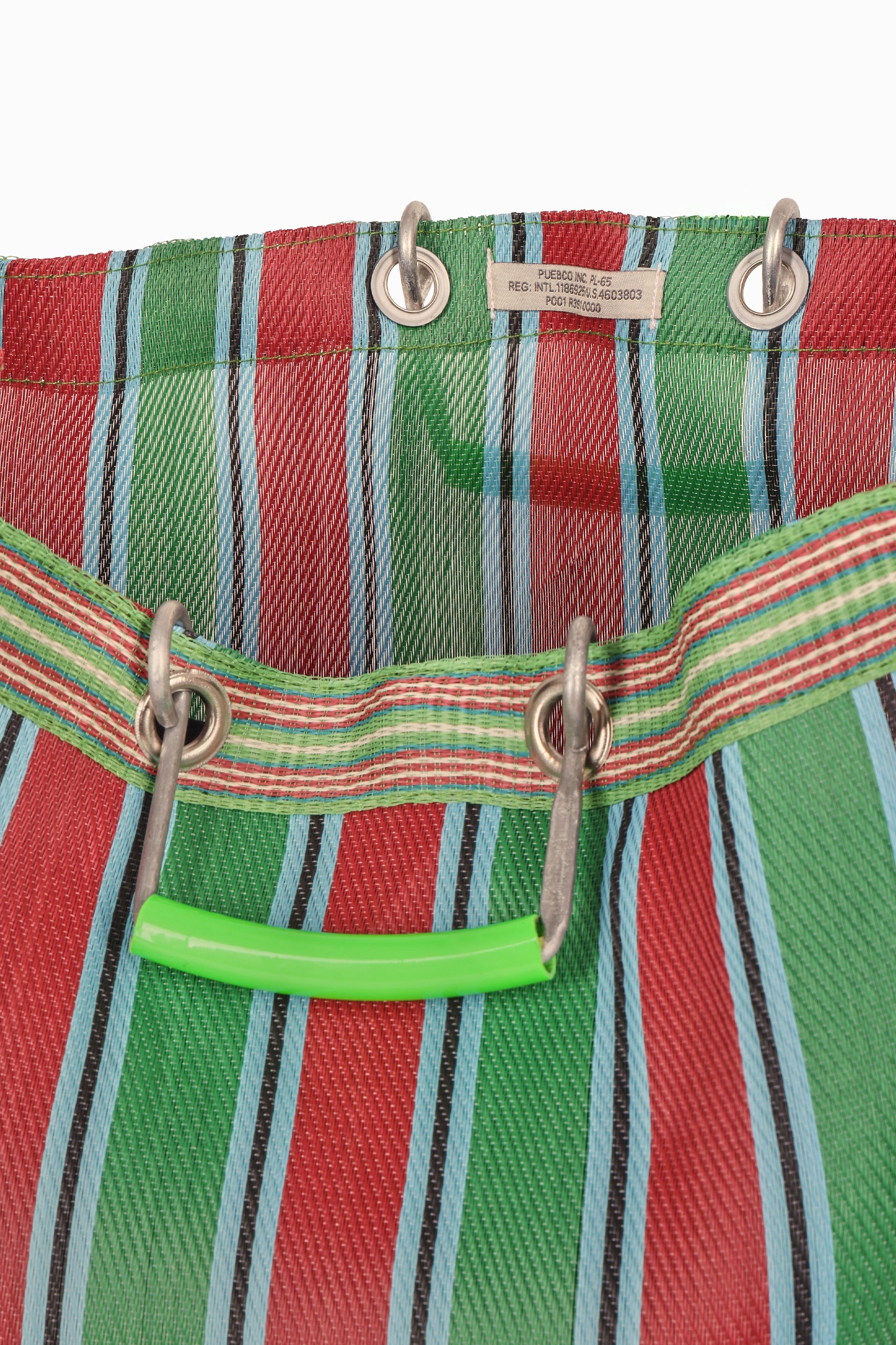 Le Market Bag, conçu à partir de toile recyclée de chaises longues de plage, se caractérise par ses teintes éclatantes et son format parfaitement adapté pour vos activités quotidiennes.