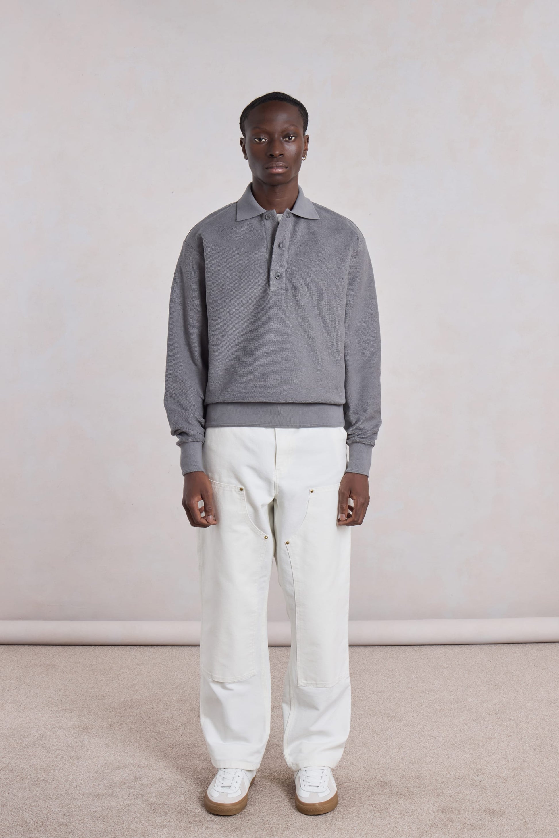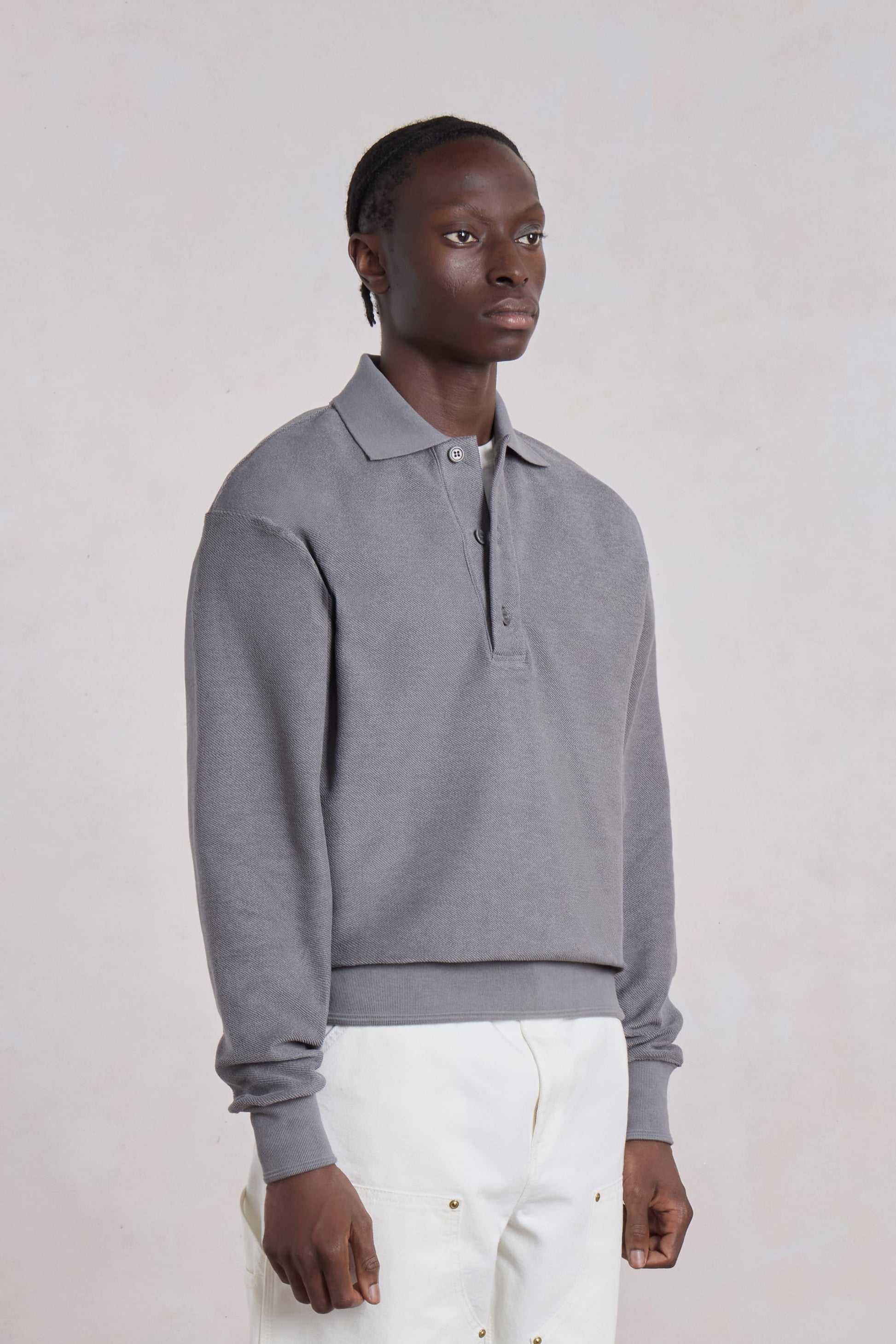 Le Reversed Polo Sweatshirt de Museum Garments revisite le polo universitaire avec une approche contemporaine. Confectionné en reverse french terry 100% coton, il révèle à l’extérieur les bouclettes habituellement dissimulées à l’intérieur, apportant texture et relief à la matière. Sa coupe droite en fait une pièce facile à porter au quotidien, avec une tenue naturellement structurée.