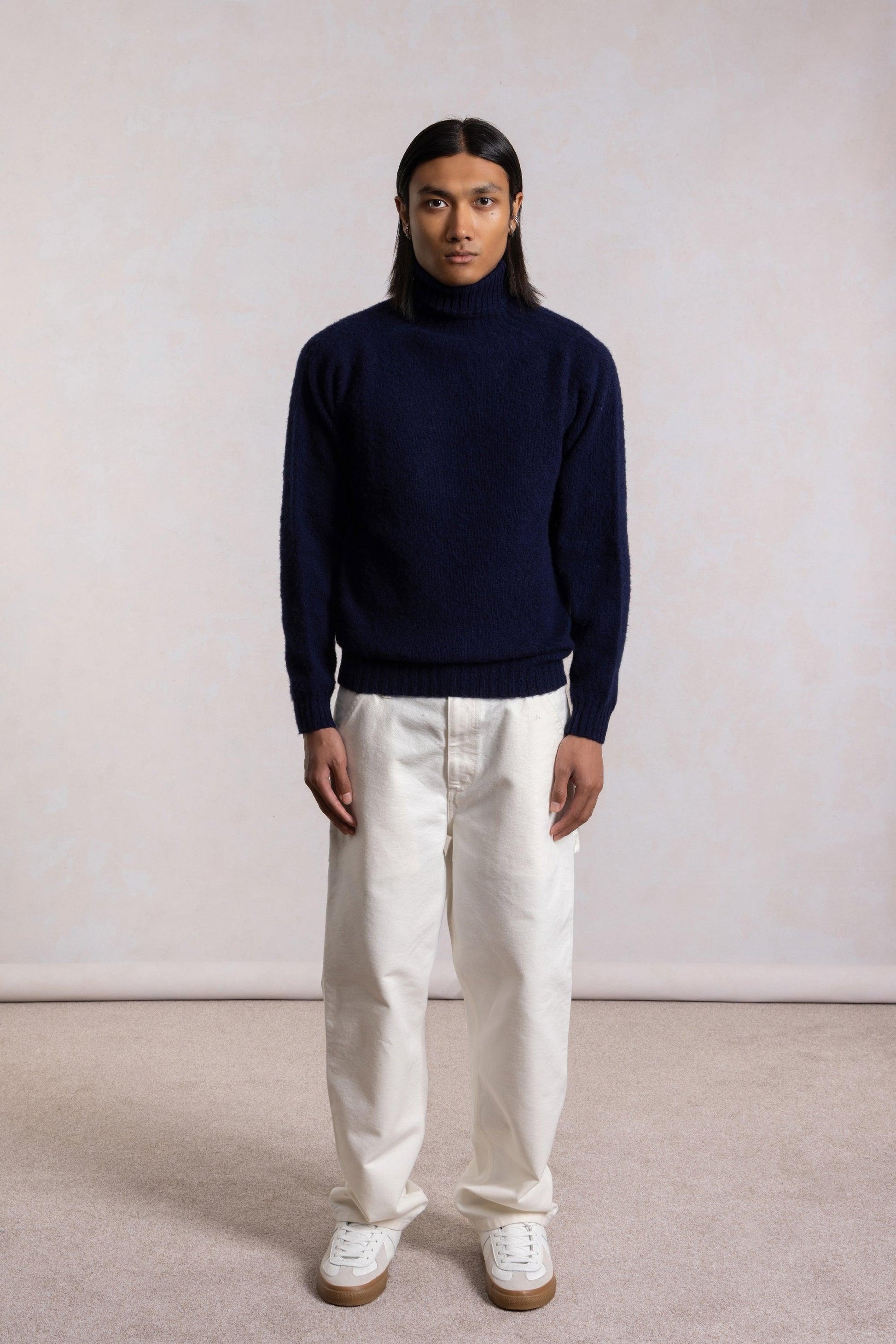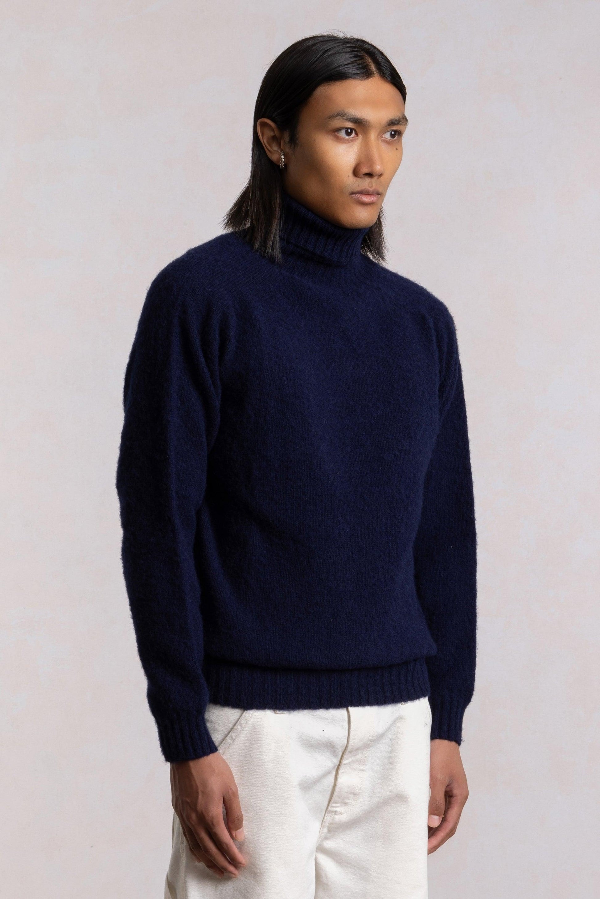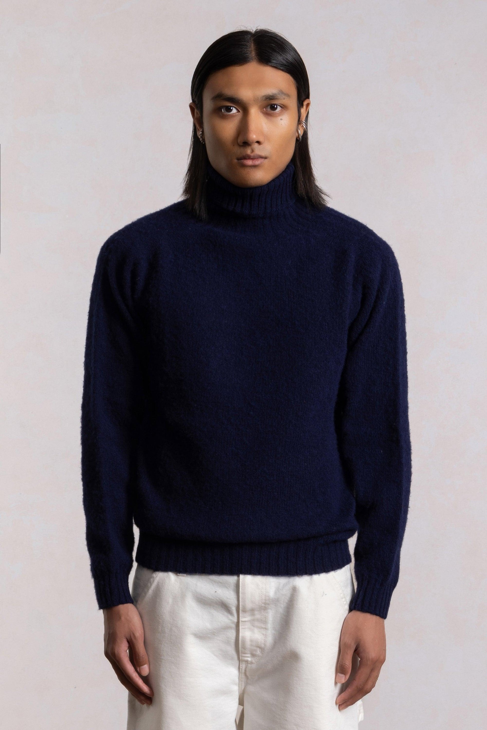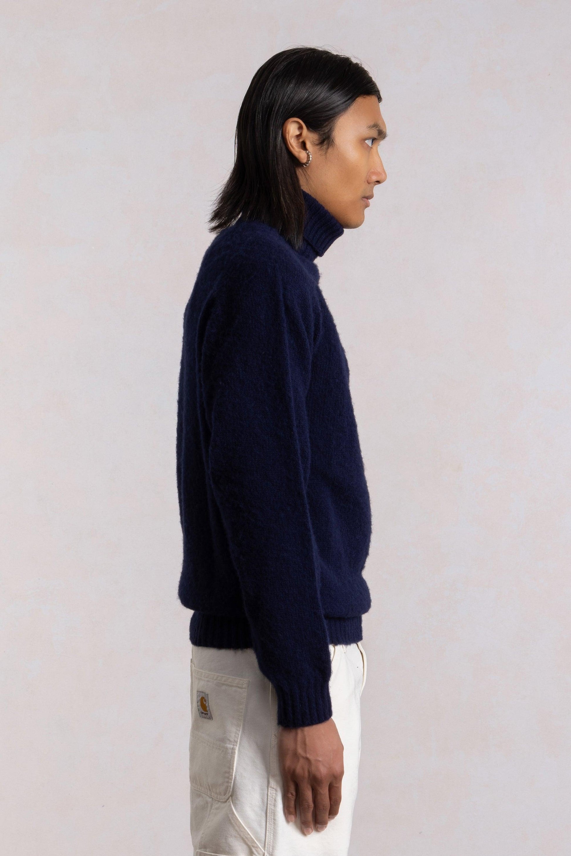 Pull col roulé Shaggy Dog en laine - Bleu Marine