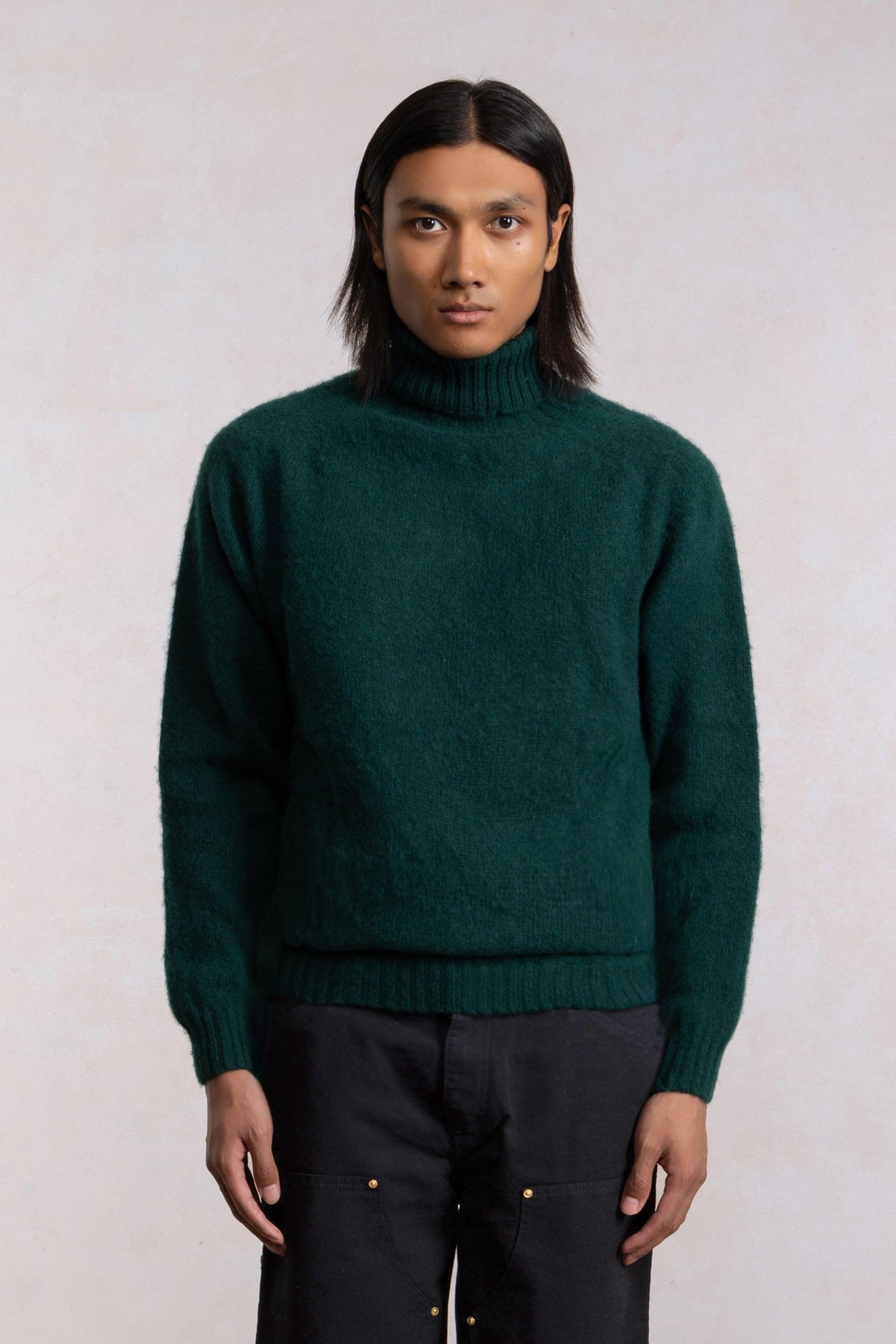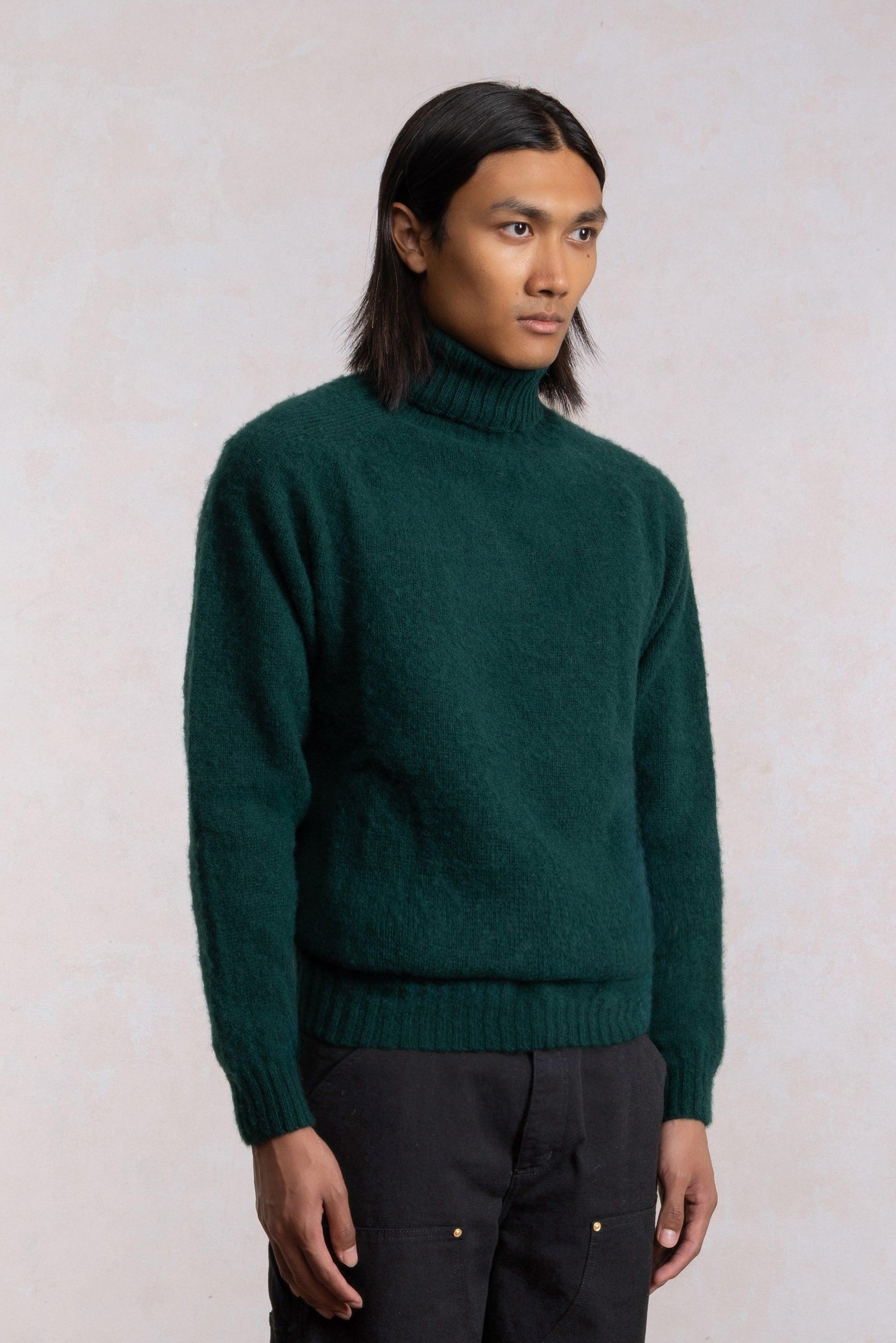 Pull col roulé Shaggy Dog en laine - Vert Foncé