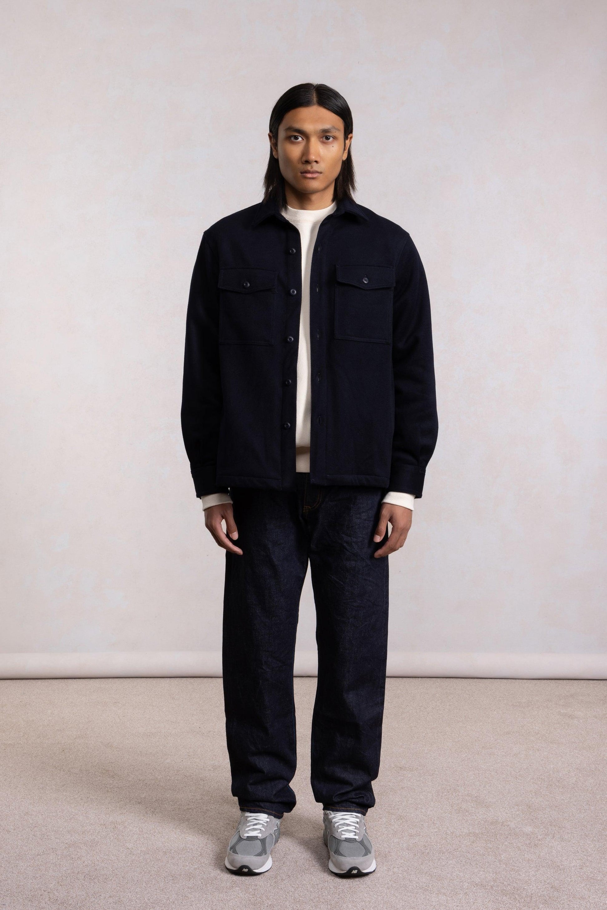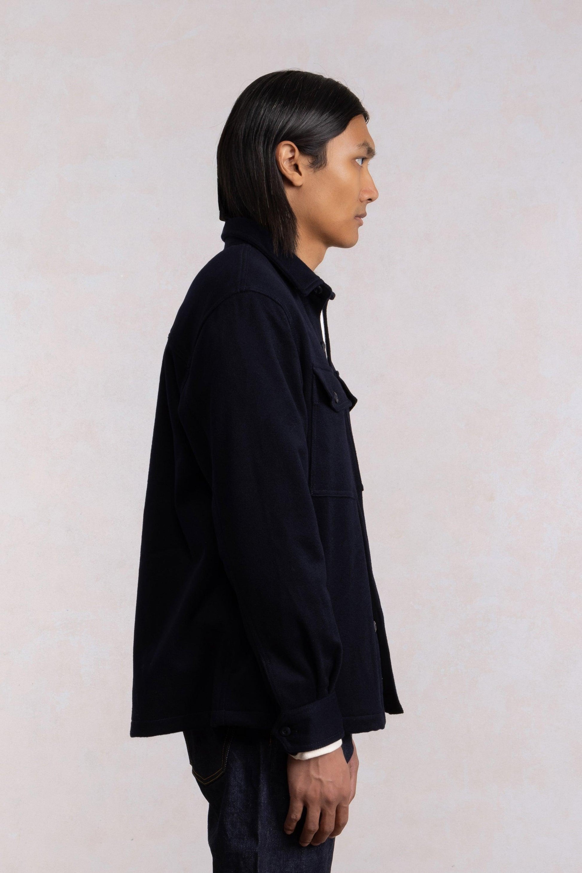 Inspirée des Field Shirts (Type III) de l’US Army des années 60-70, cette veste revisite leur silhouette avec des proportions généreuses et un drap de laine double-face luxueux, offrant confort et toucher incomparables.