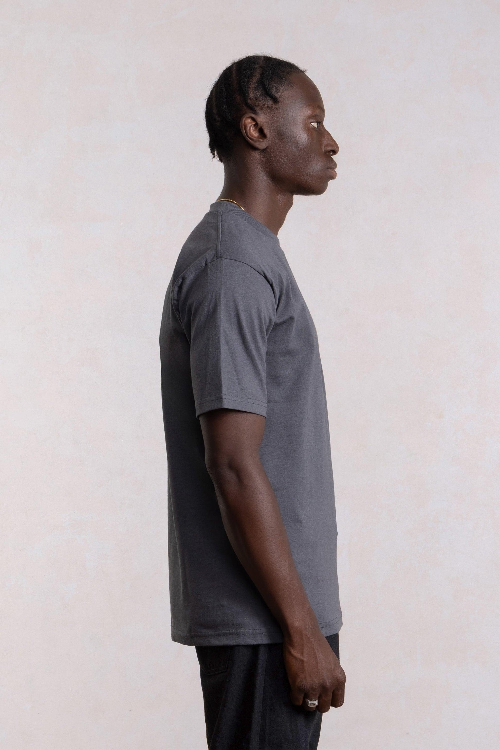 Véritable icône, ce t-shirt en coton épais californien se distingue par sa robustesse, sa coupe ample et son col indéformable. Intemporel, il conserve sa forme lavage après lavage.