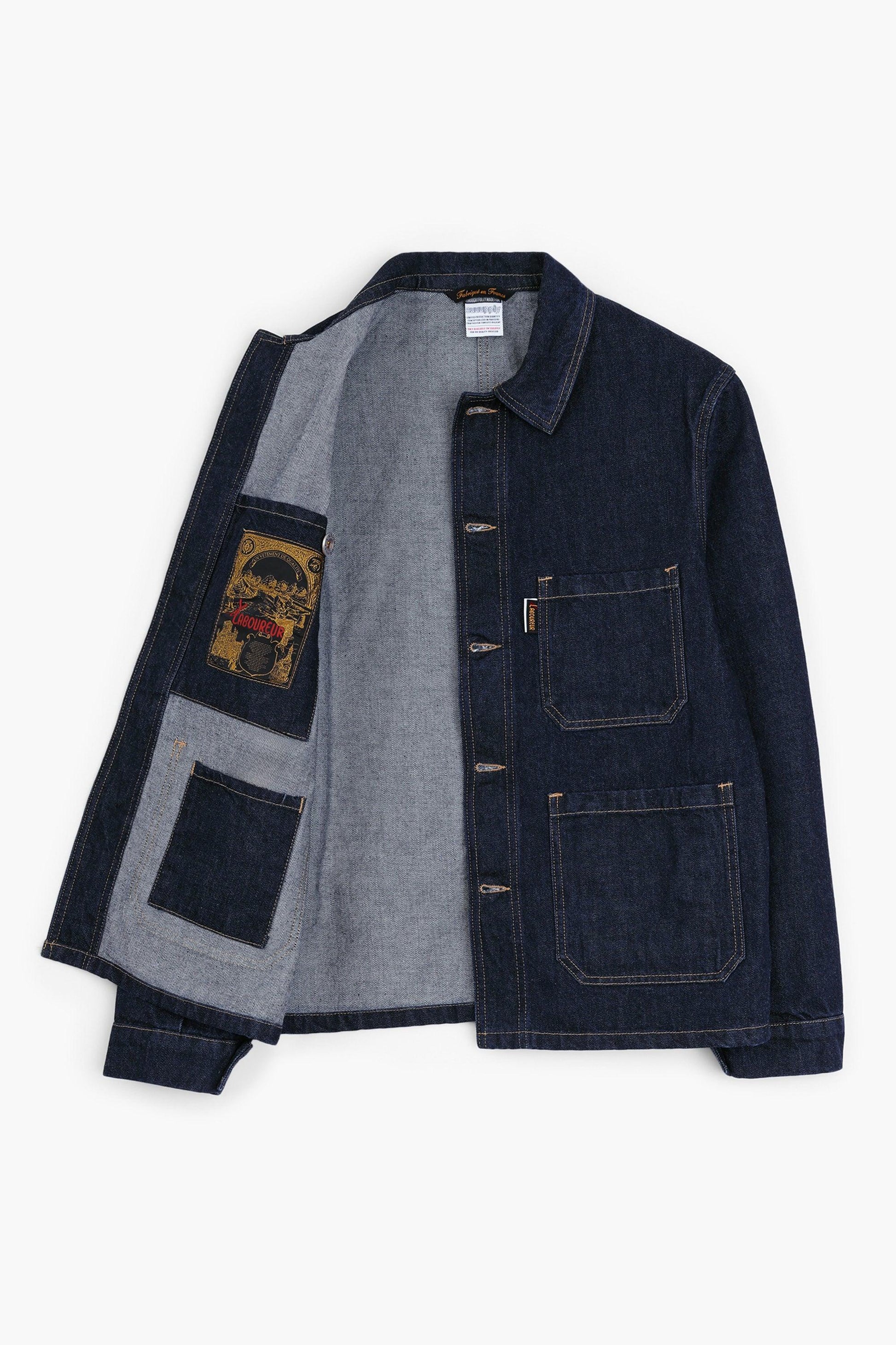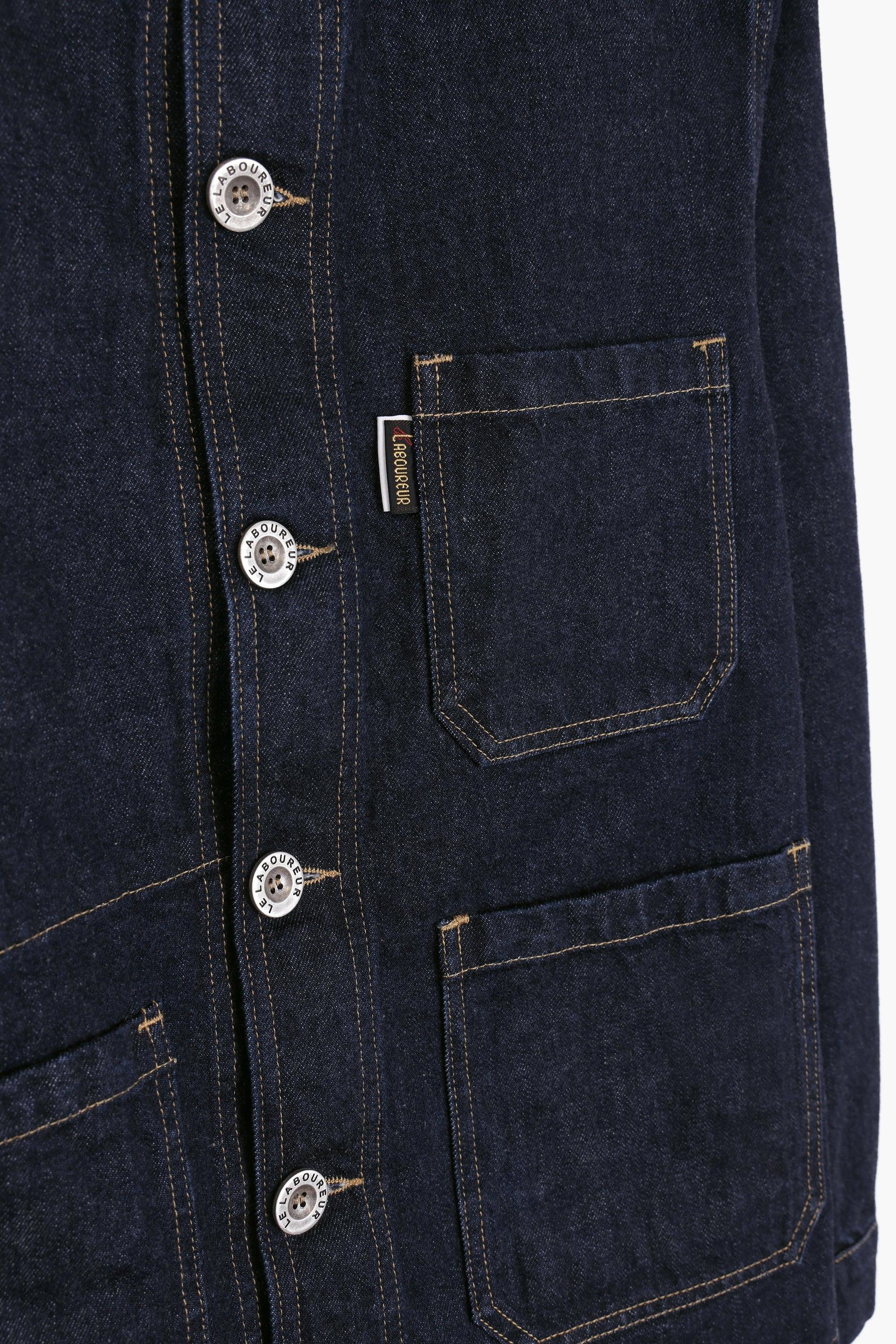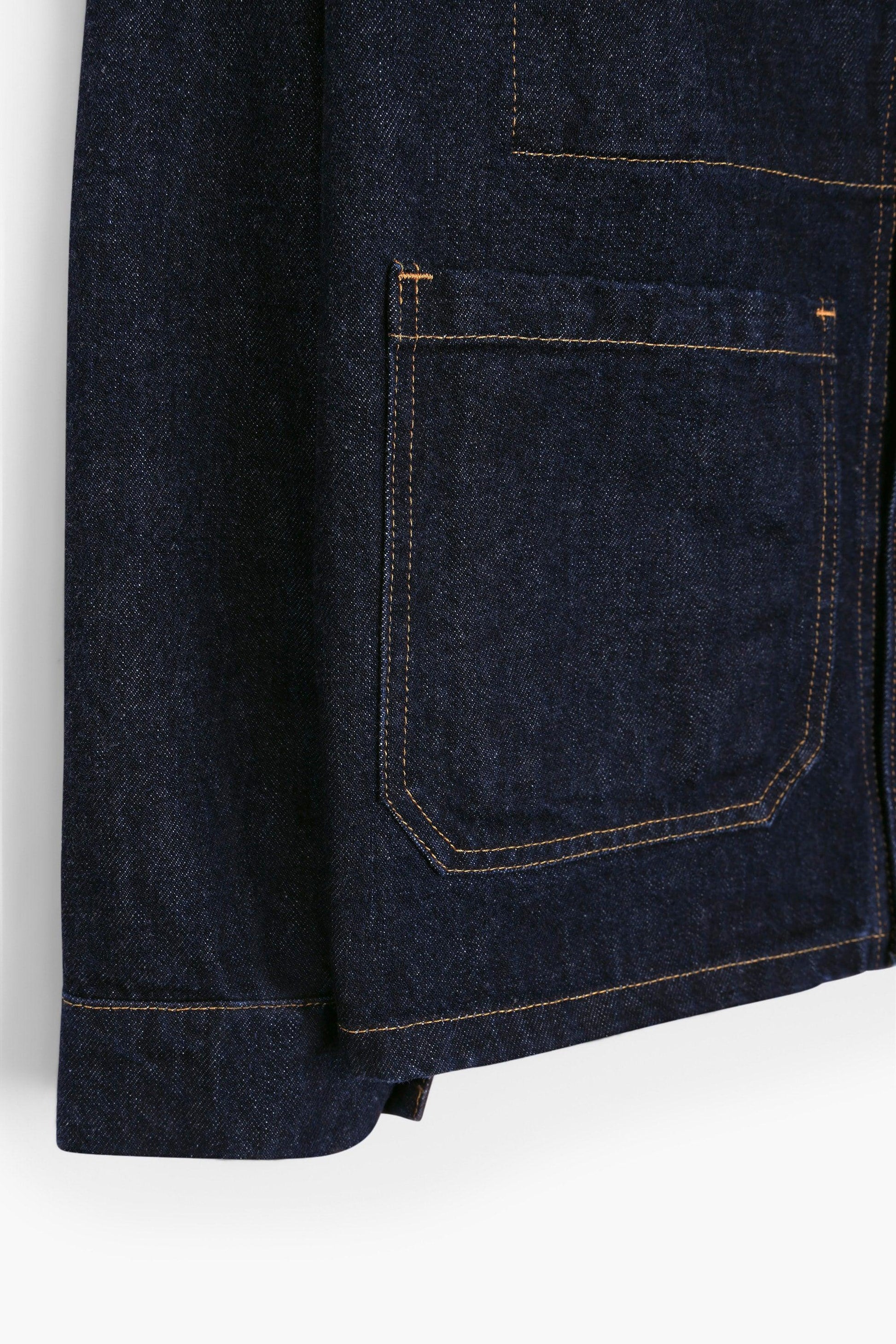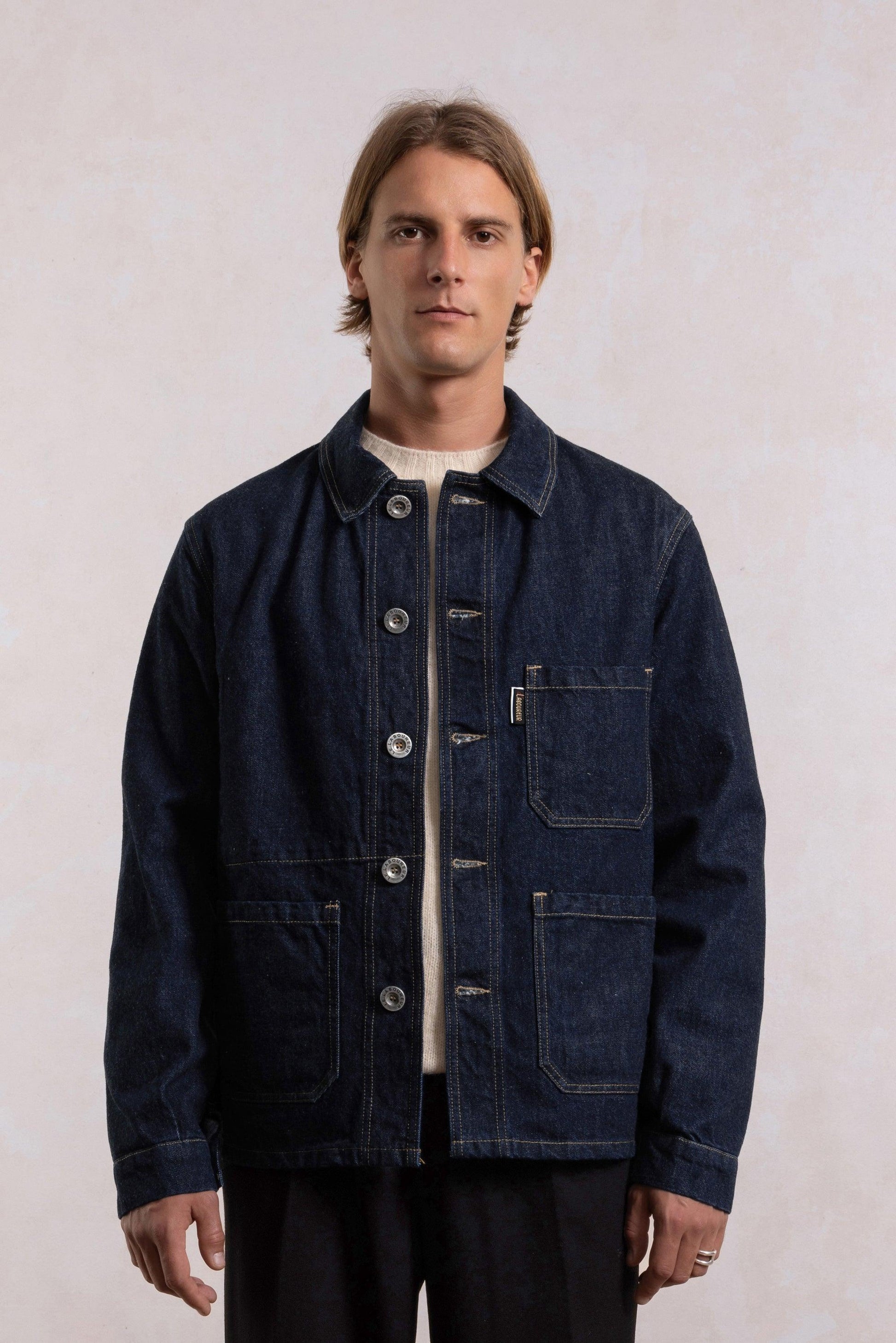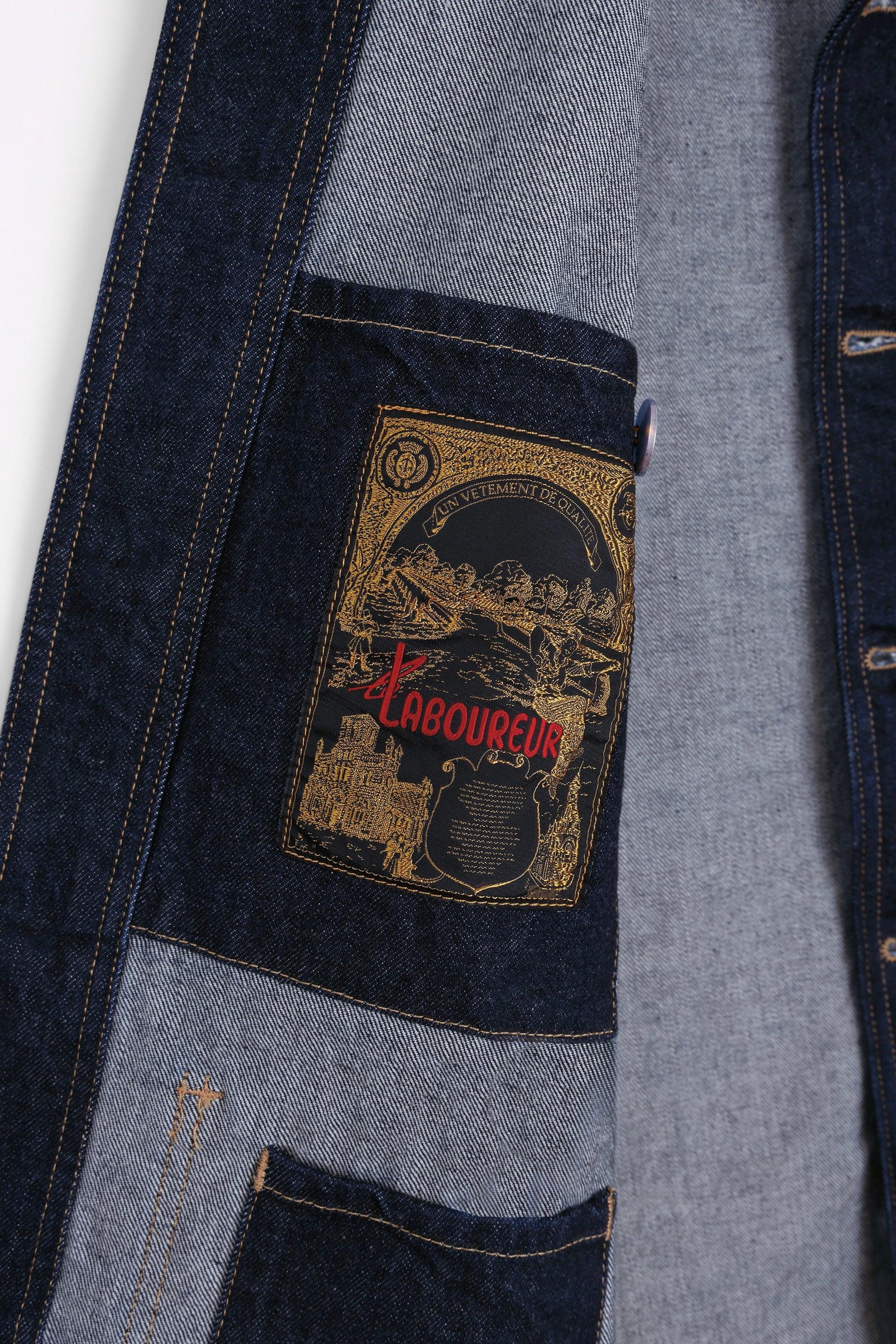 Pour cette première collaboration exclusive avec suuupply, son modèle emblématique se décline dans un denim japonais bio (13,5 oz), avec une coupe modernisée : épaules légèrement plus amples, longueur raccourcie et poches intérieures ajoutées.