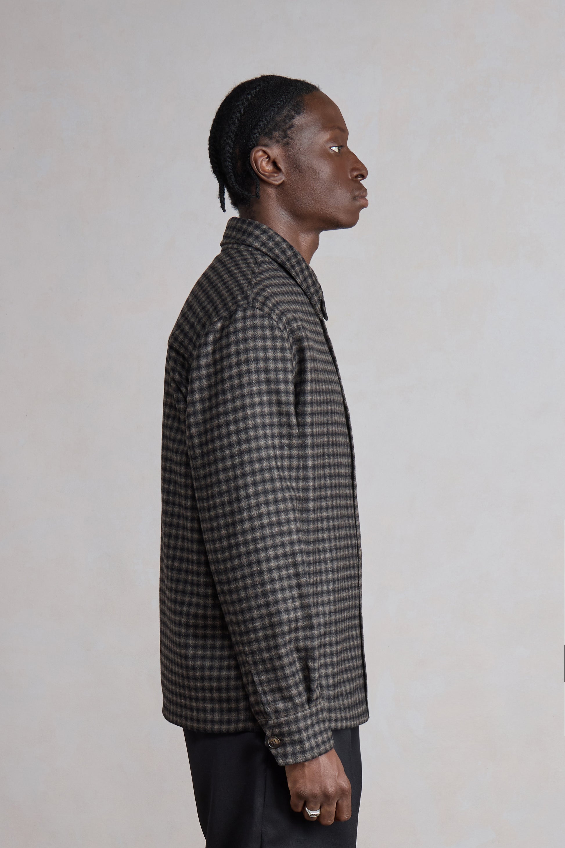 Western Overshirt - Carreaux Laine Recyclée Marron/Beige